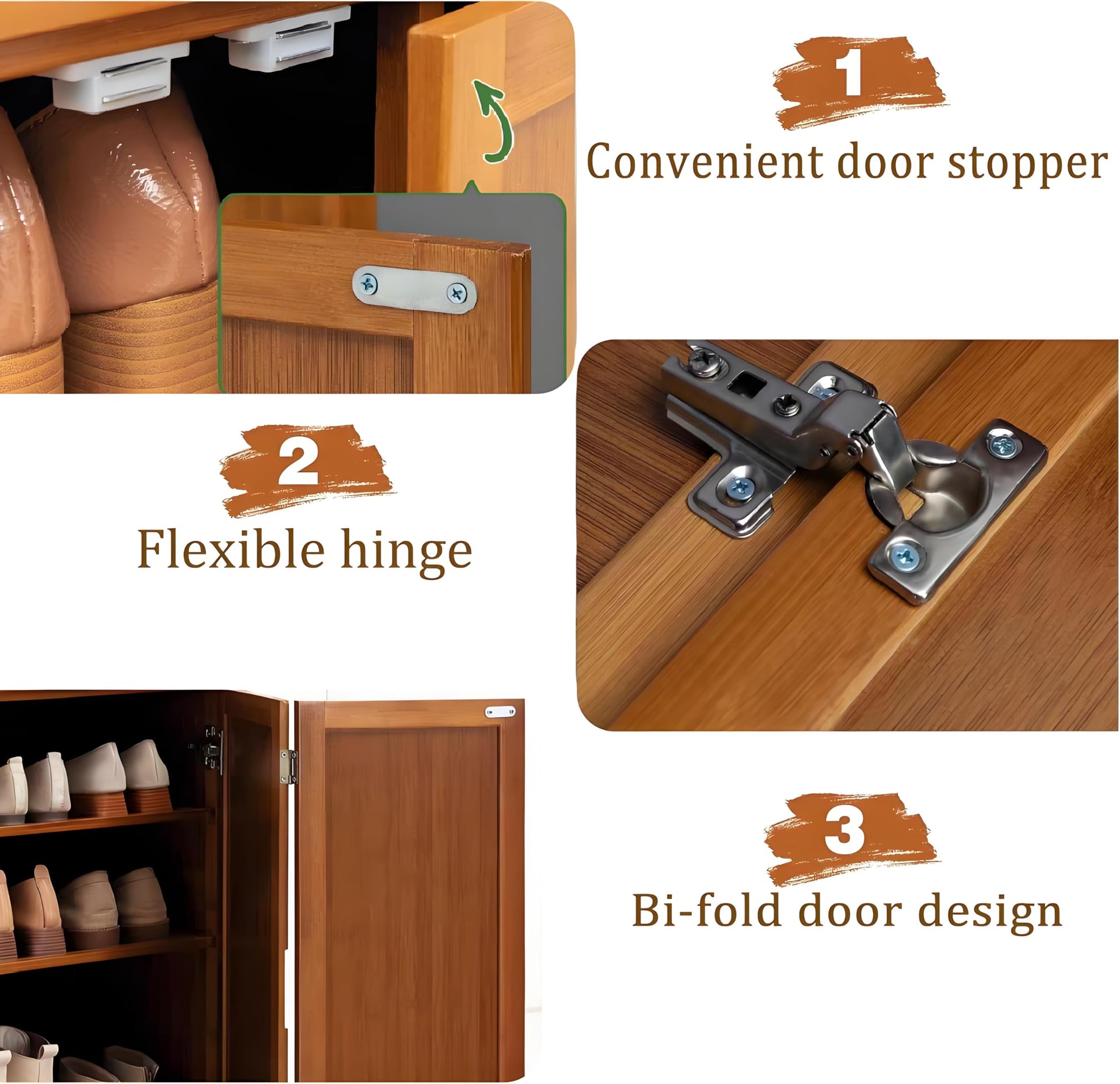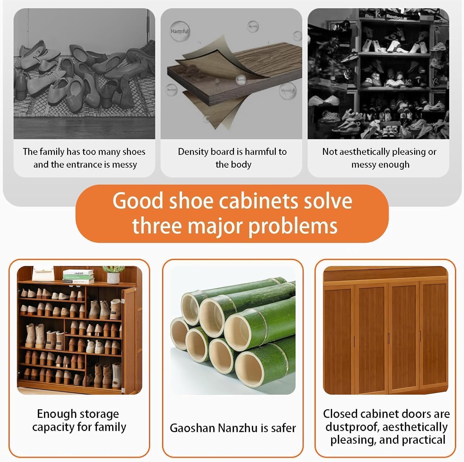 - 【Bamboo shoe cabinet for entryway】: Bamboo shoe cabinet, stylish and simple brown, very suitable for placing in the entrance, corridor, living room or porch, giving your home a neat look and saving space