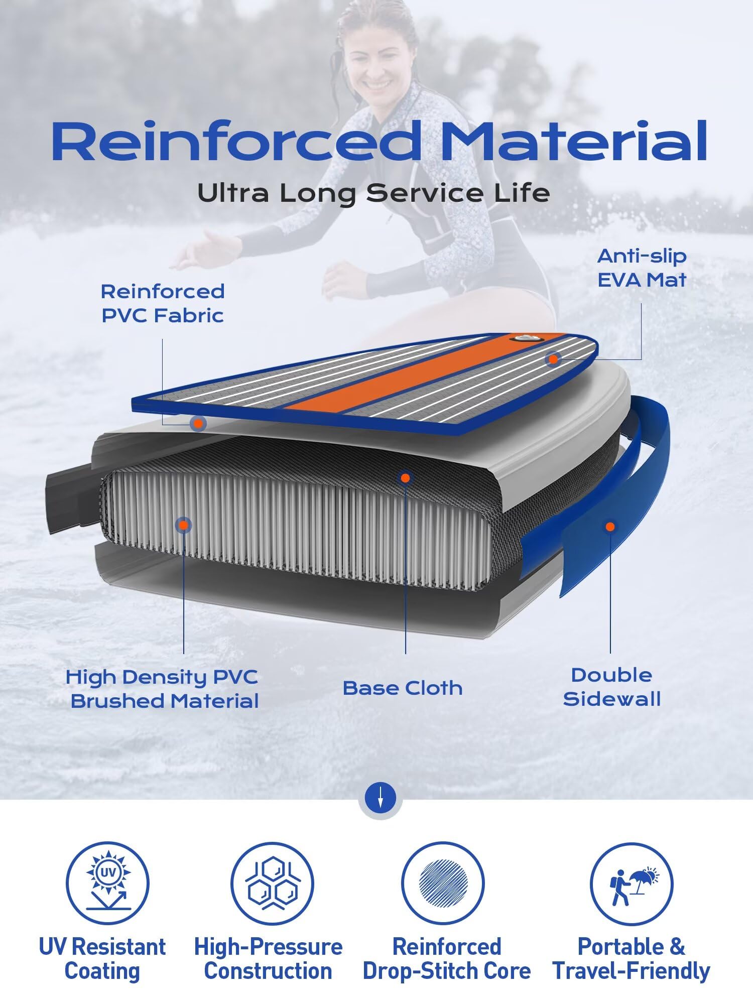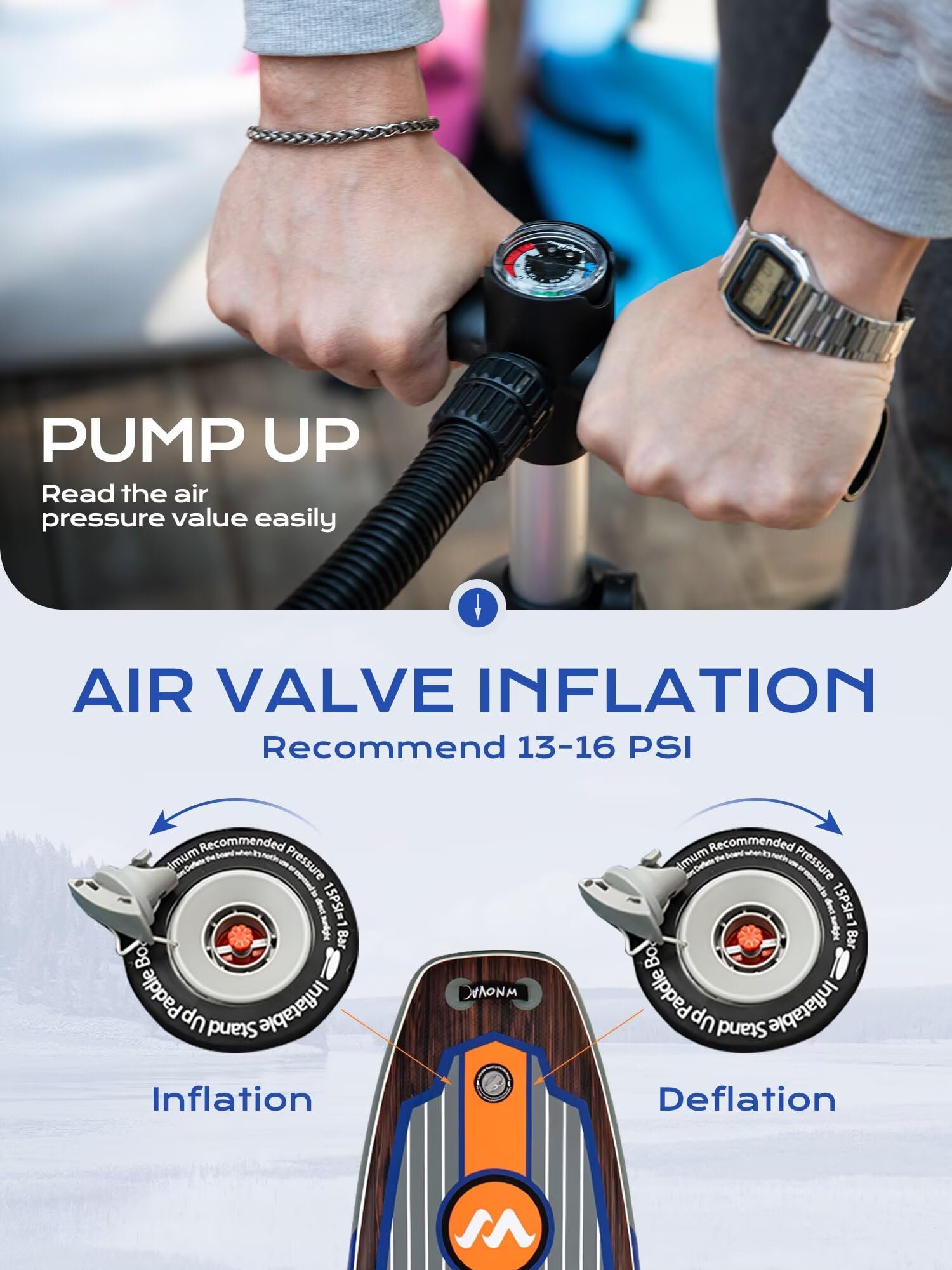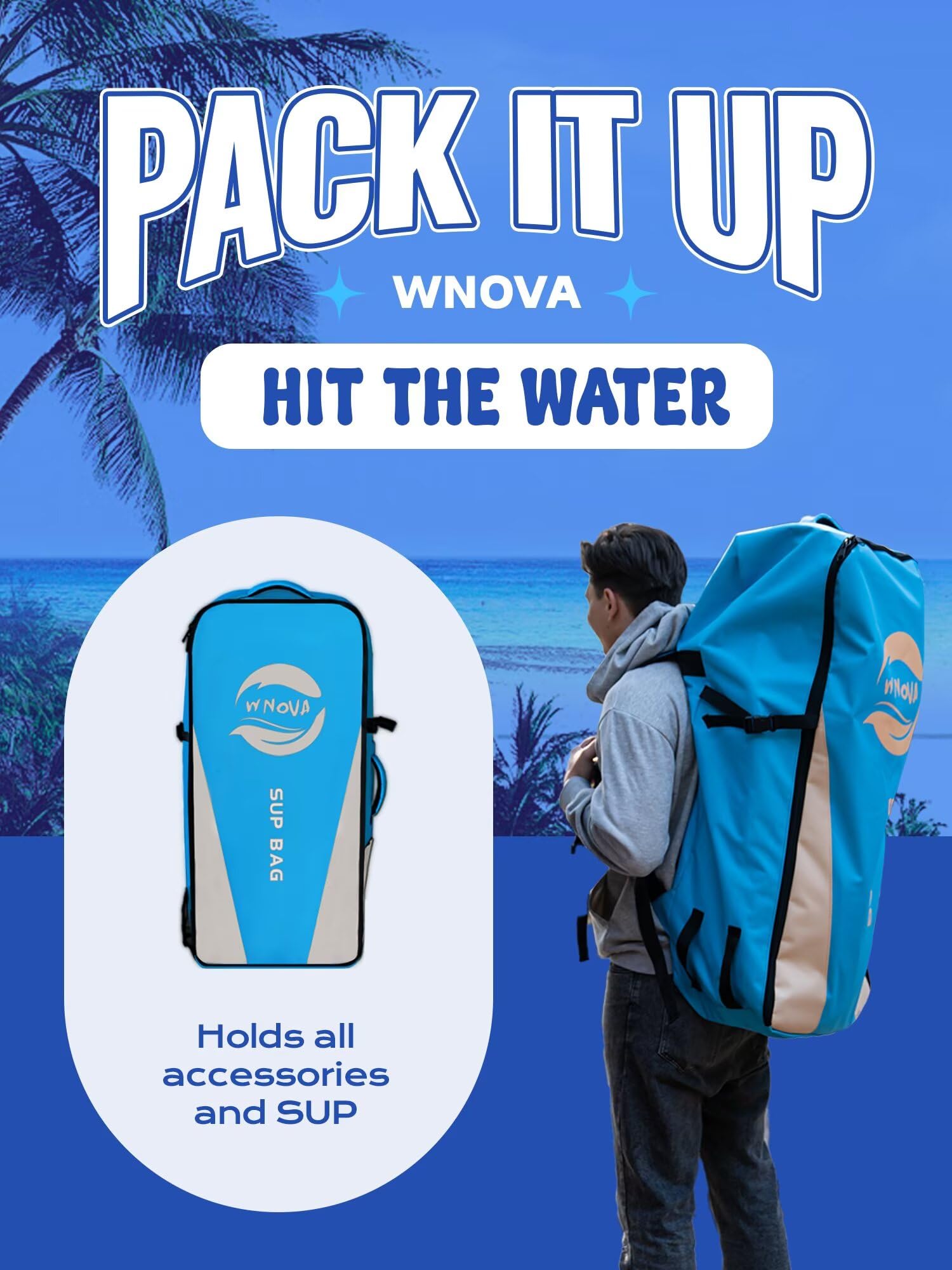 - 【Full SUP Kit】: Includes high-pressure hand pump; 3-piece adjustable paddle; 3 removable fins for speed control; 1 shoulder strap; 1 ankle leash; waterproof phone bag; repair kit; travel backpack—ready to use out of the box