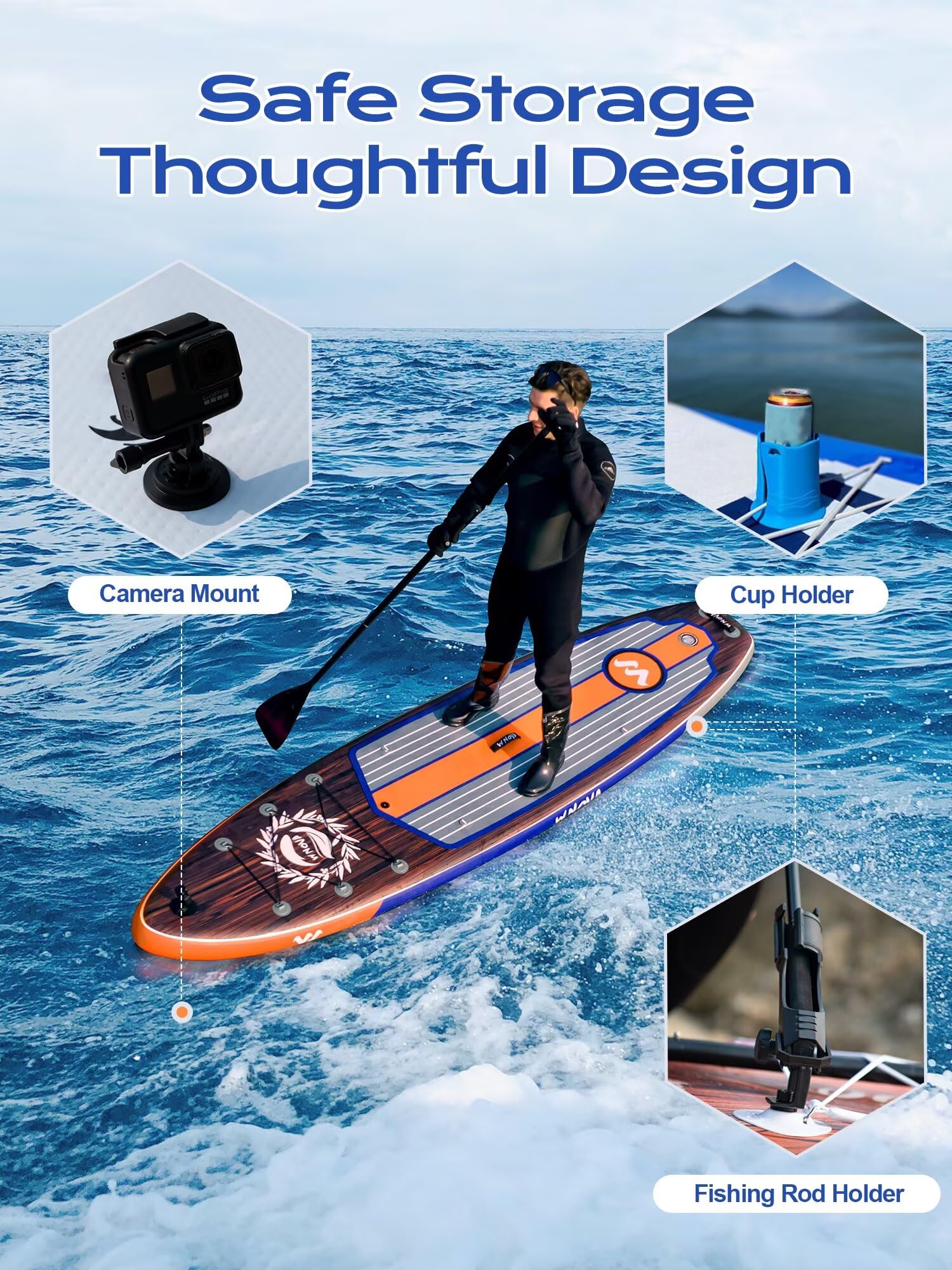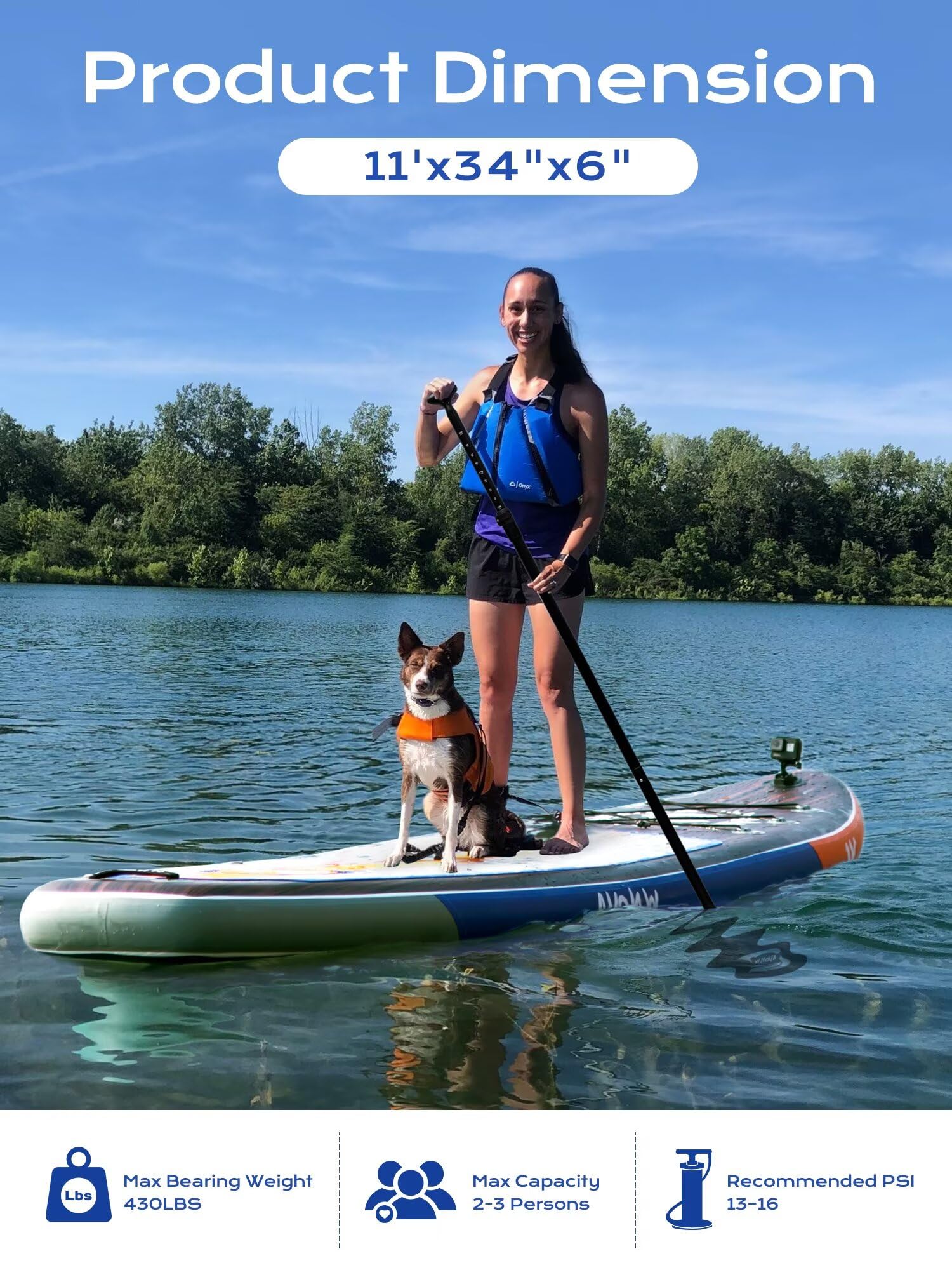 WNOVA Extra Wide Inflatable Paddle Board, 11' x 34" x 6" Stand Up Paddle Board for Adults, SUP Accessories with Camera Mount, 2+1 Family for Lake, Ocean, Sea,Deep Wood Grain