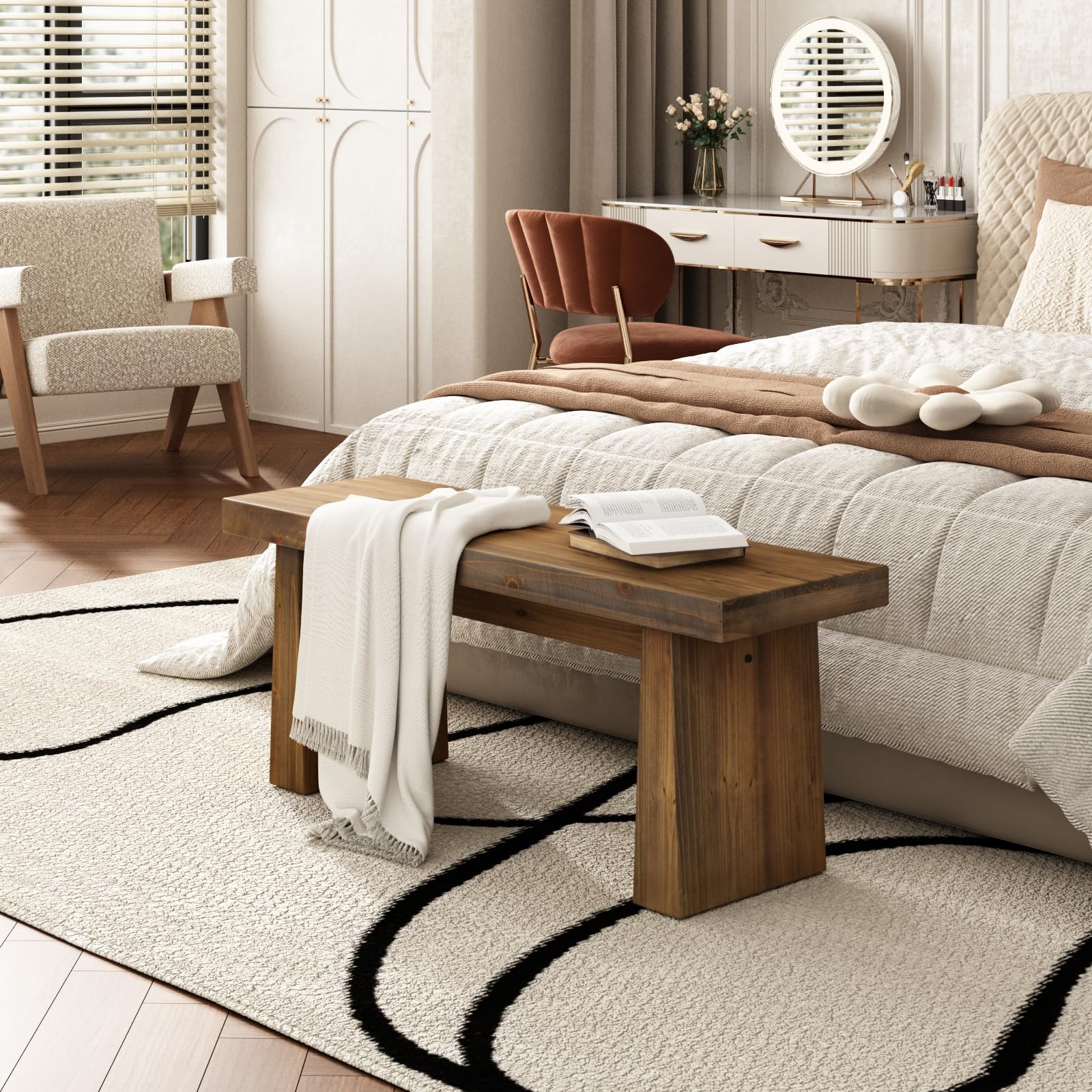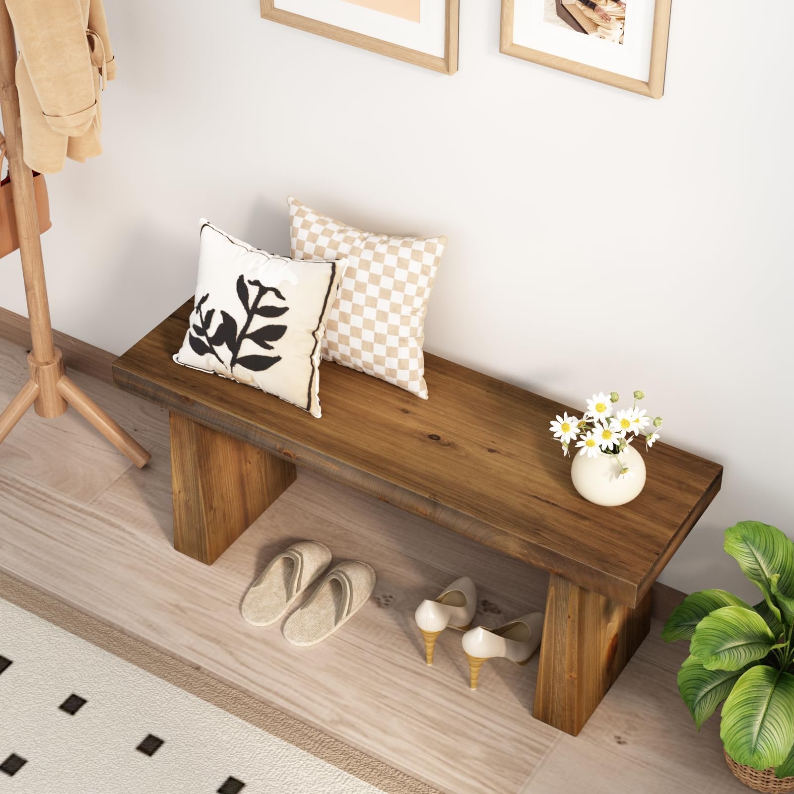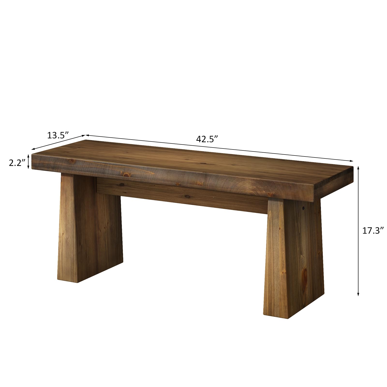 - 【Reliable Support & Comfort】Featuring a thick seat panel, reinforced bottom crossbar, and wide angled legs, this wood bench ensures reliable support and stability. Measuring 42.5"W × 13.5"D × 17.3"H, the spacious surface offers comfortable seating for daily use.