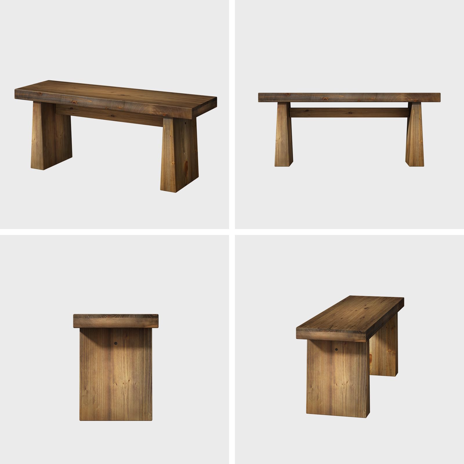 - 【Angled Leg Design & Rustic Farmhouse Style】Showcasing a weathered natural finish and rich wood grain, this wooden dining bench brings rustic charm and vintage character to your indoor space. The handcrafted distressed highlights the beauty of natural wood, while the wide angled legs provides enhanced stability and a distinctive farmhouse look.
