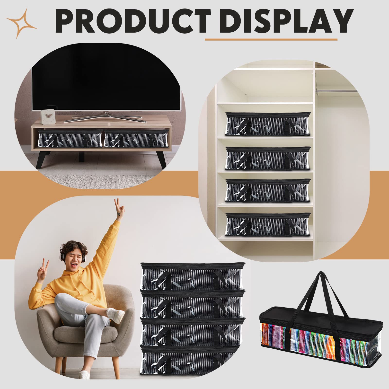 - Sturdy to Use: these DVD storage containers are made of quality PVC material, and the handle is made of durable polyester fabric, sturdy and wear resistant, reliable and reusable, which allows you to easily carry and transport your collections, bringing you a lot of convenience