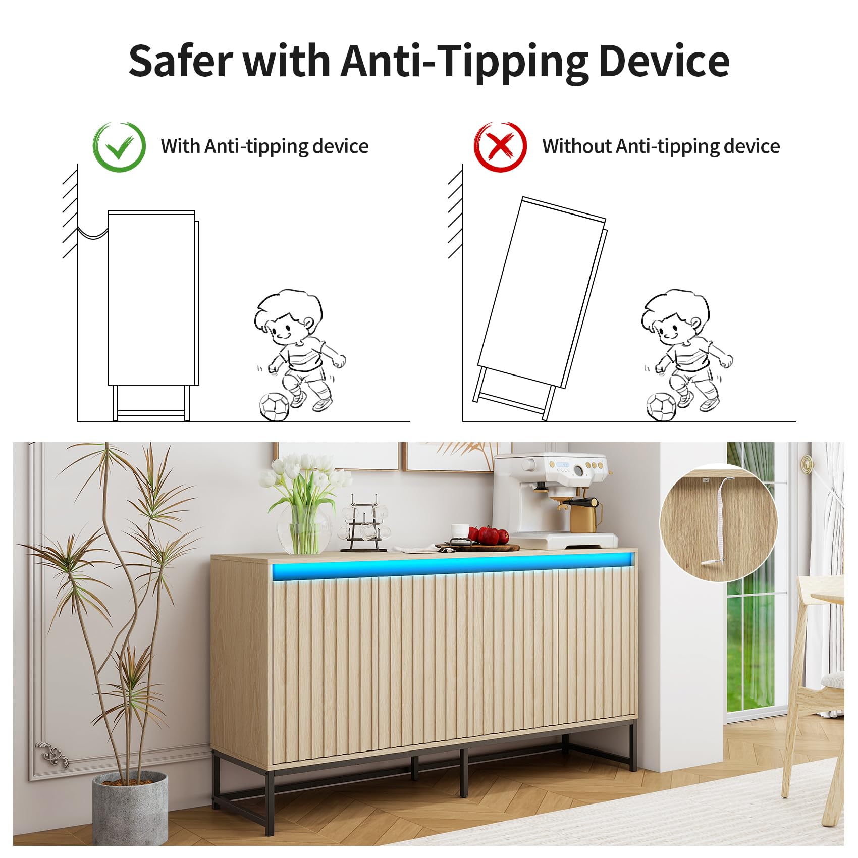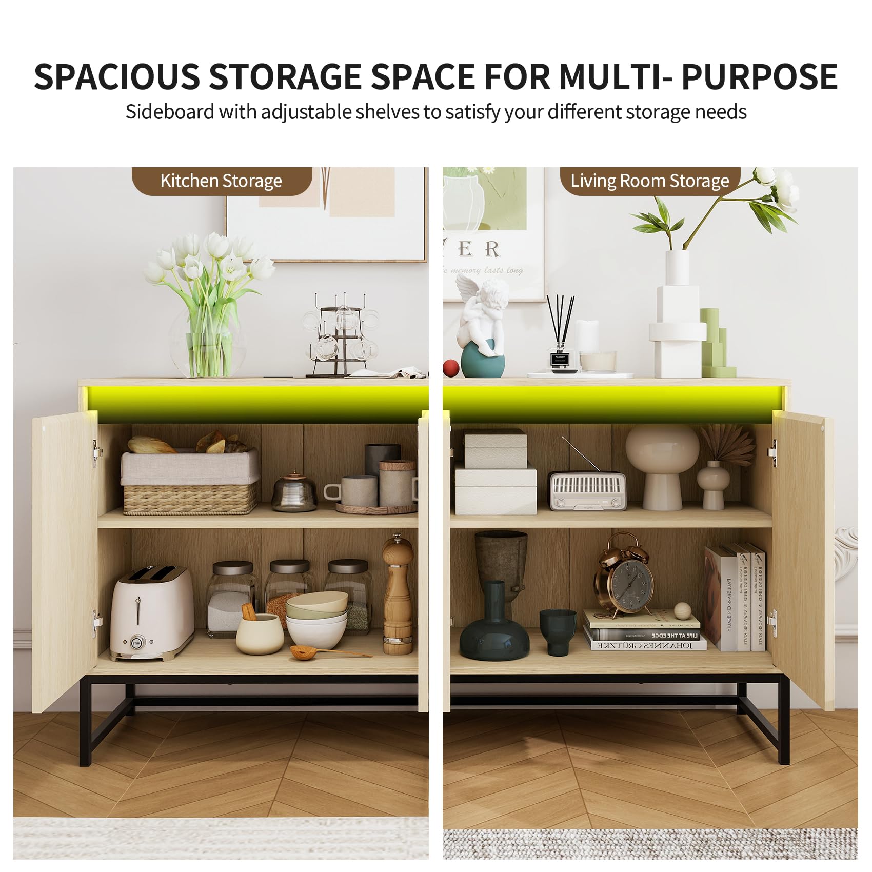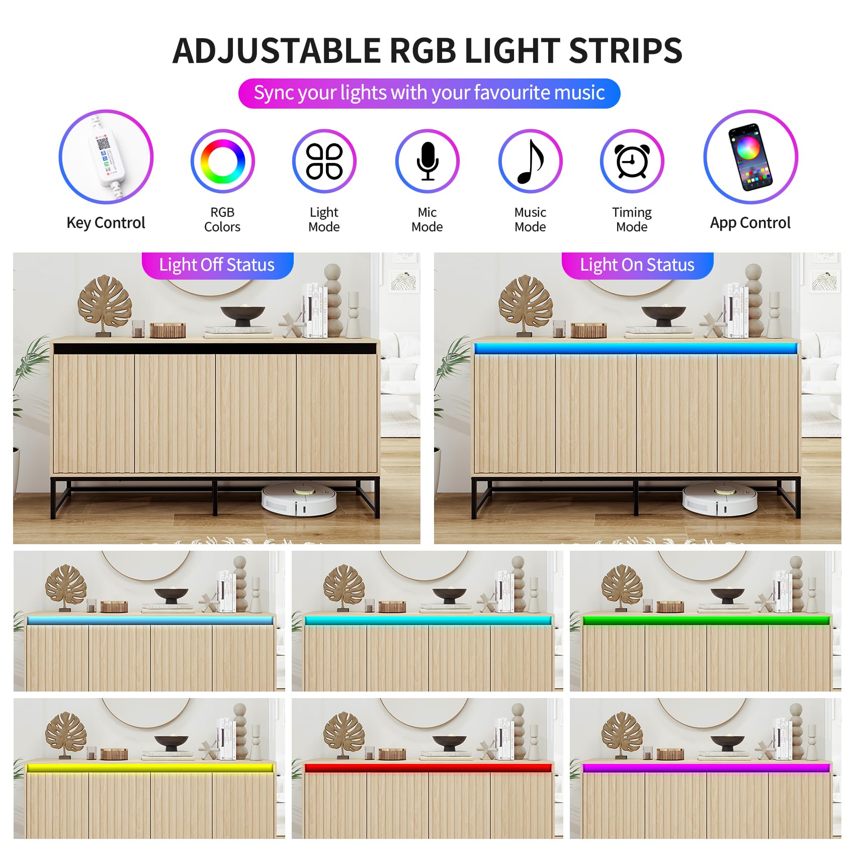 - Elegant Fluted Design: The sideboard buffet cabinet features a stylish fluted texture on the cabinet surface, adding a sophisticated touch to your kitchen and living room. The built-in LED light The built-in LED light elevate your room ambiance. Through remote control or APP, you can freely set the brightness, color, mode that best suits your mood and environment, making the sideboard cabinet a great addition to your living space.