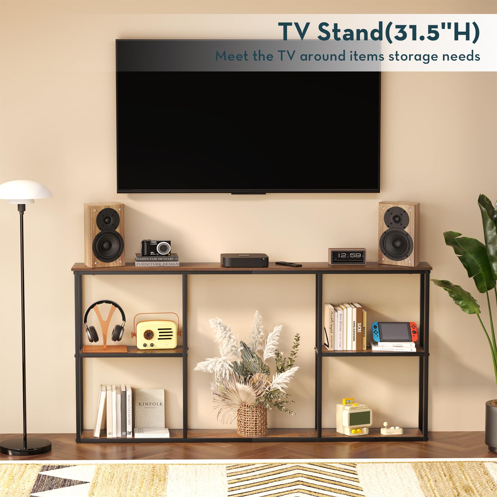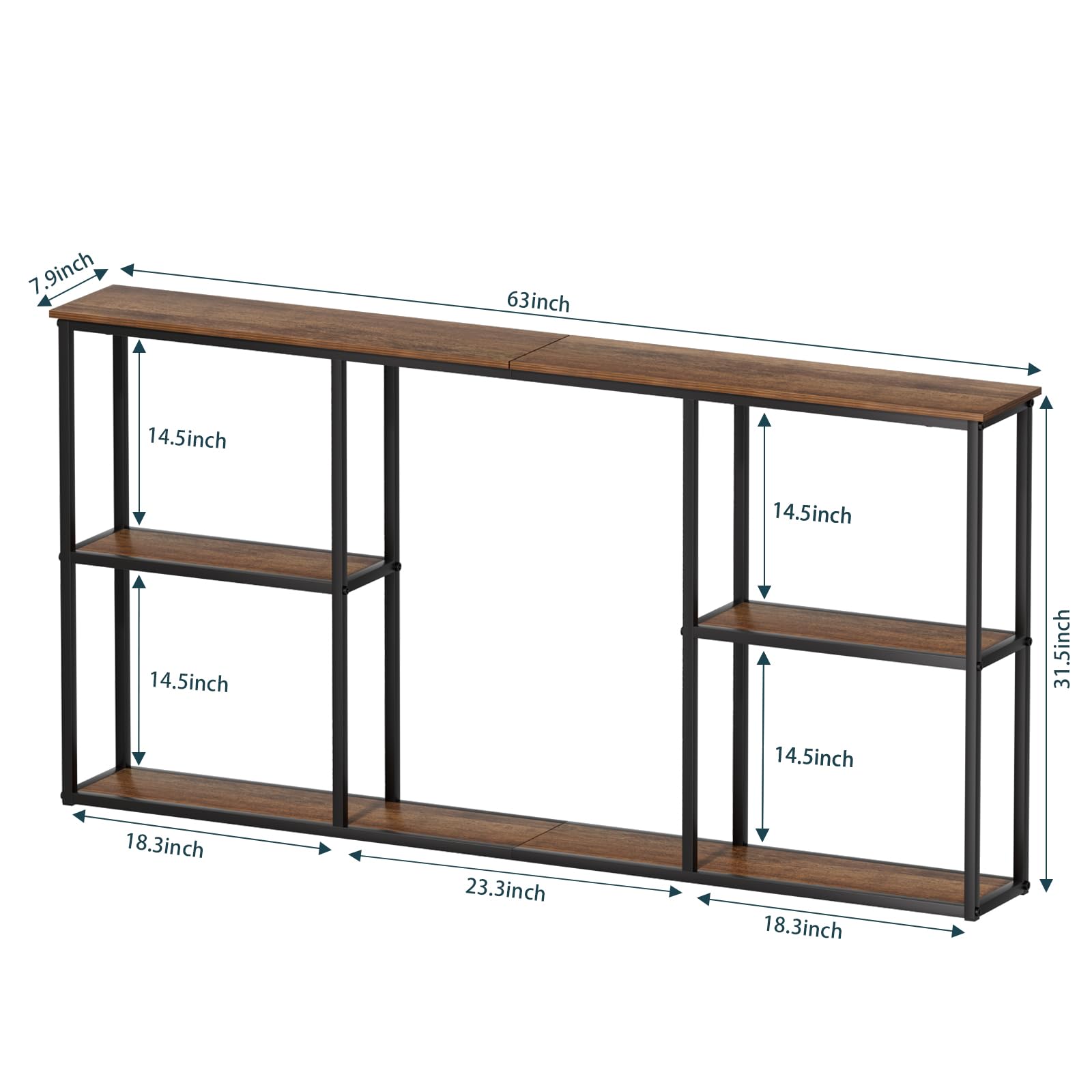 WOHOMO Console Table,3-Tire Small Entryway Tables,Narrow Sofa Table for Hallway,Rustic Brown(63 inch)