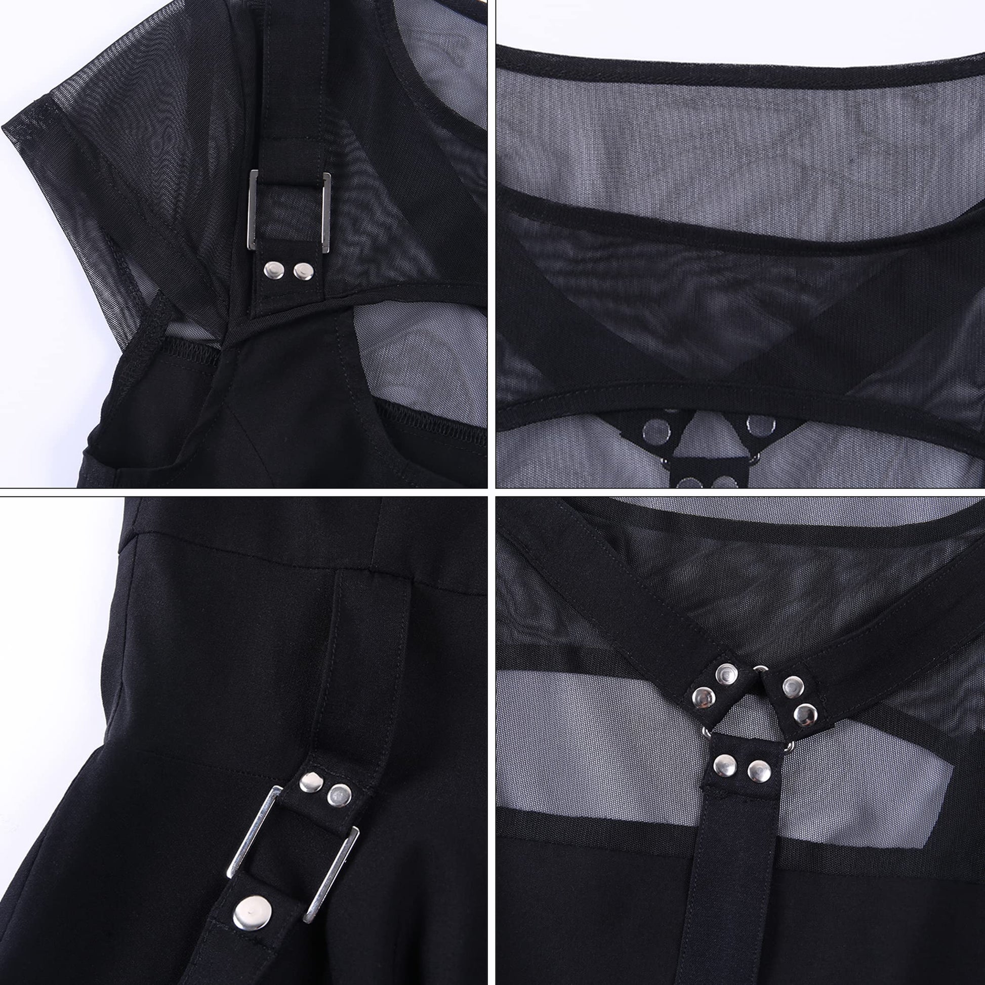 Women Gothic Dress Black mesh Summer Sexy Mini Dress Hipster Vintage high Waist Street Party Dress X-Large