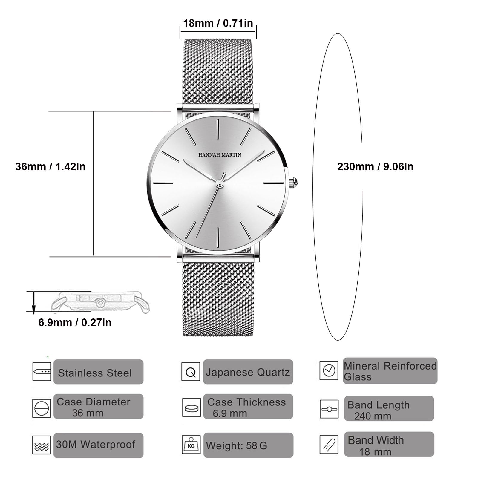 Women Watches Minimalist Fashion Quartz Wrist Watch Party Dress Bracelet Watch for Ladies with Stainless Steel Mesh Band (Silver)