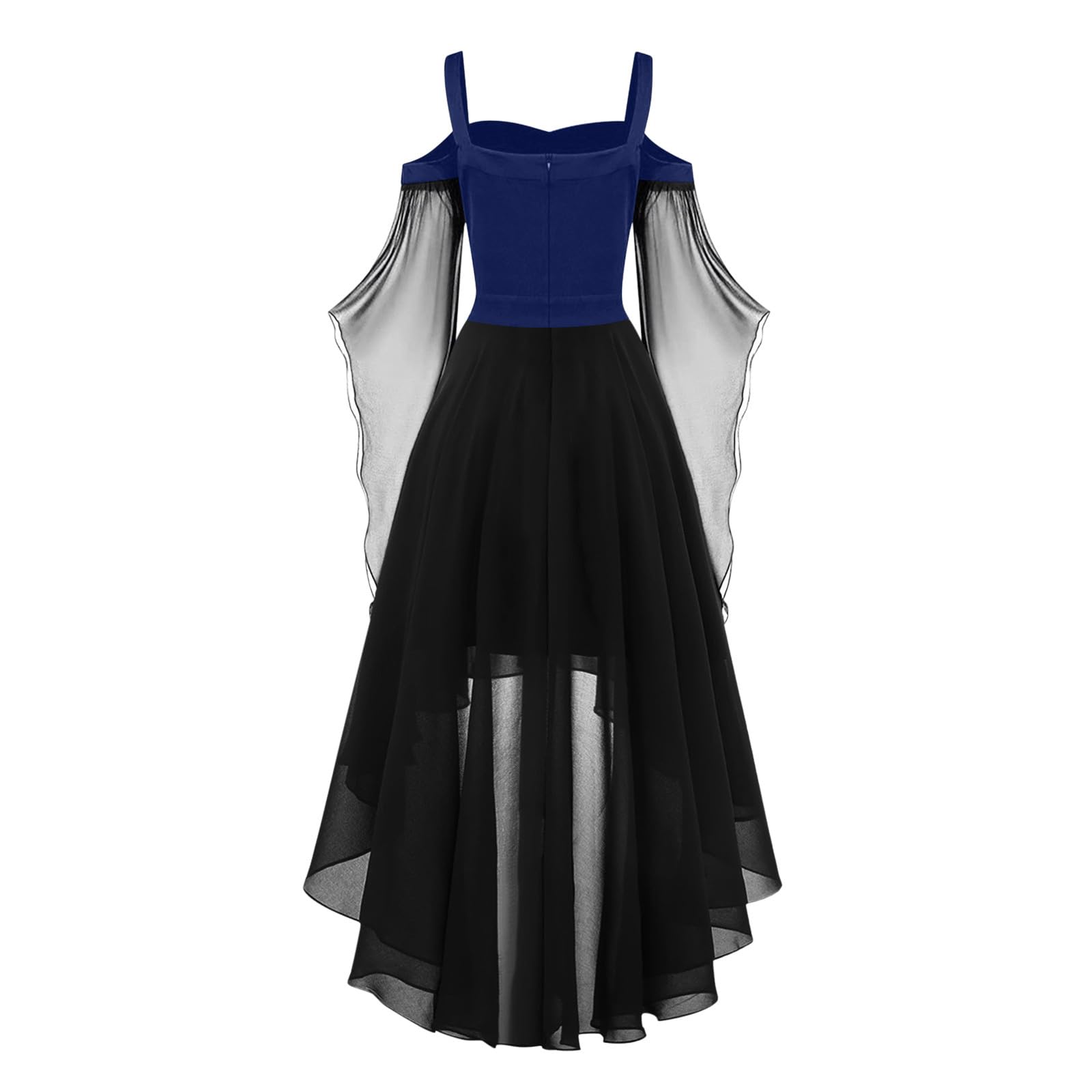 Women Witch Dress Renaissance Medieval Vampire Costume Halloween Cosplay Butterfly Sleeve Mesh Gothic Dress