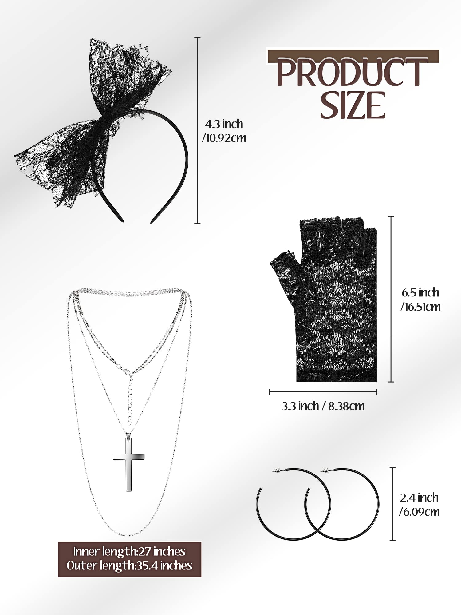 - Comfortable and Trustworthy to Wear: the jacket is made of polyester and velvet, and the black tutu dress is made of chiffon, knitted fabric and mesh; The silver cross necklace and hoop earrings are made of metal, carefully plated; The legging pants,gloves and the headband are made of lace fabric, designed with beautiful patterns; The 80s outfit for women can provide you an enjoyable wearing experience