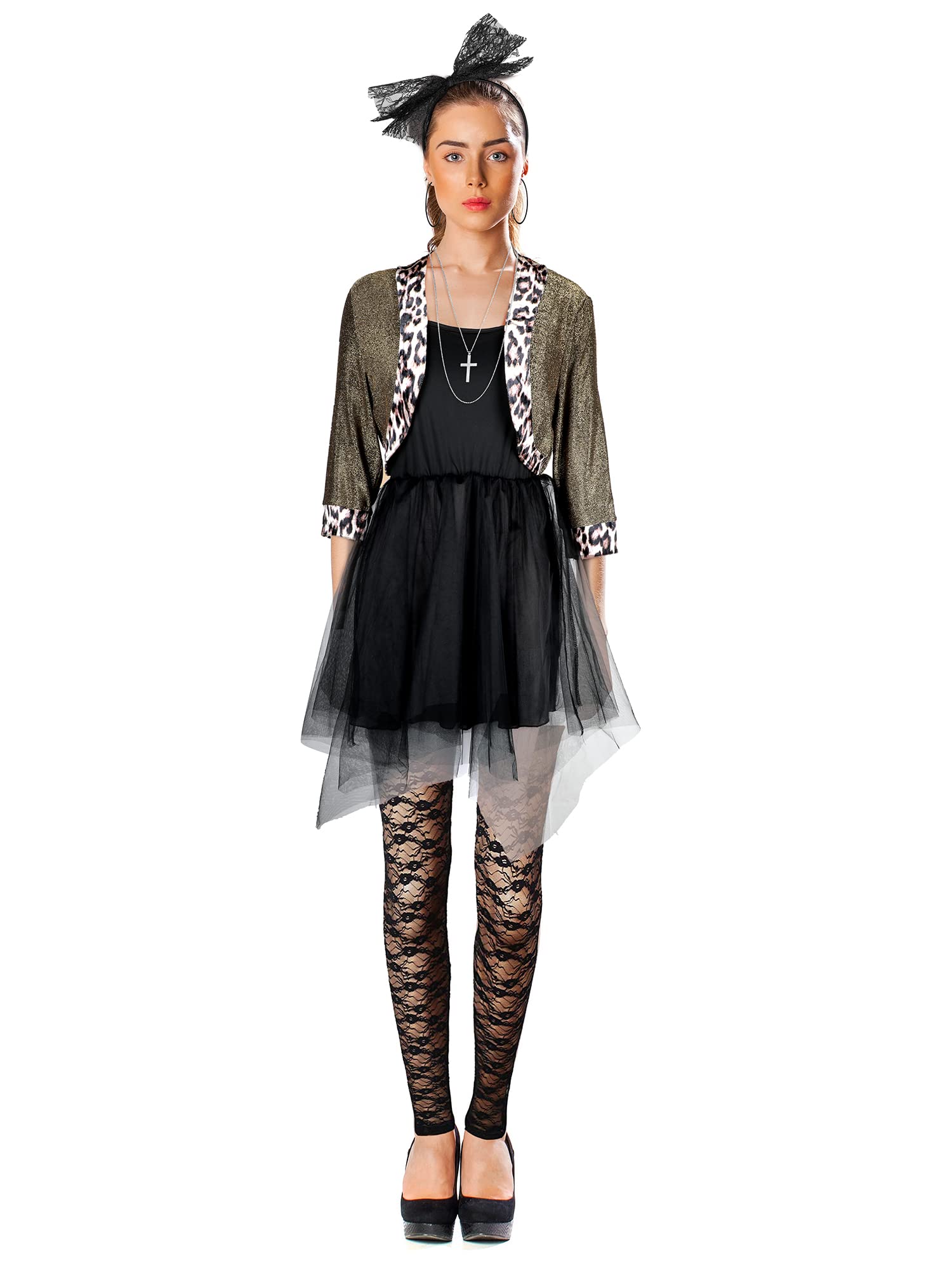 - Sufficient and Thoughtful Set: the package contains 7 pieces of accessories for 1980s clothes in all, including 1 piece of jacket that is trimmed with leopard print, 1 black tutu dress, 1 lace headband, 1 silver cross necklace, 1 pair of black legging pants, 1 pair of hoop earrings, 1 pair of lace gloves, which are sufficient and thoughtful combination that can satisfy your dressing needs at 80s parties