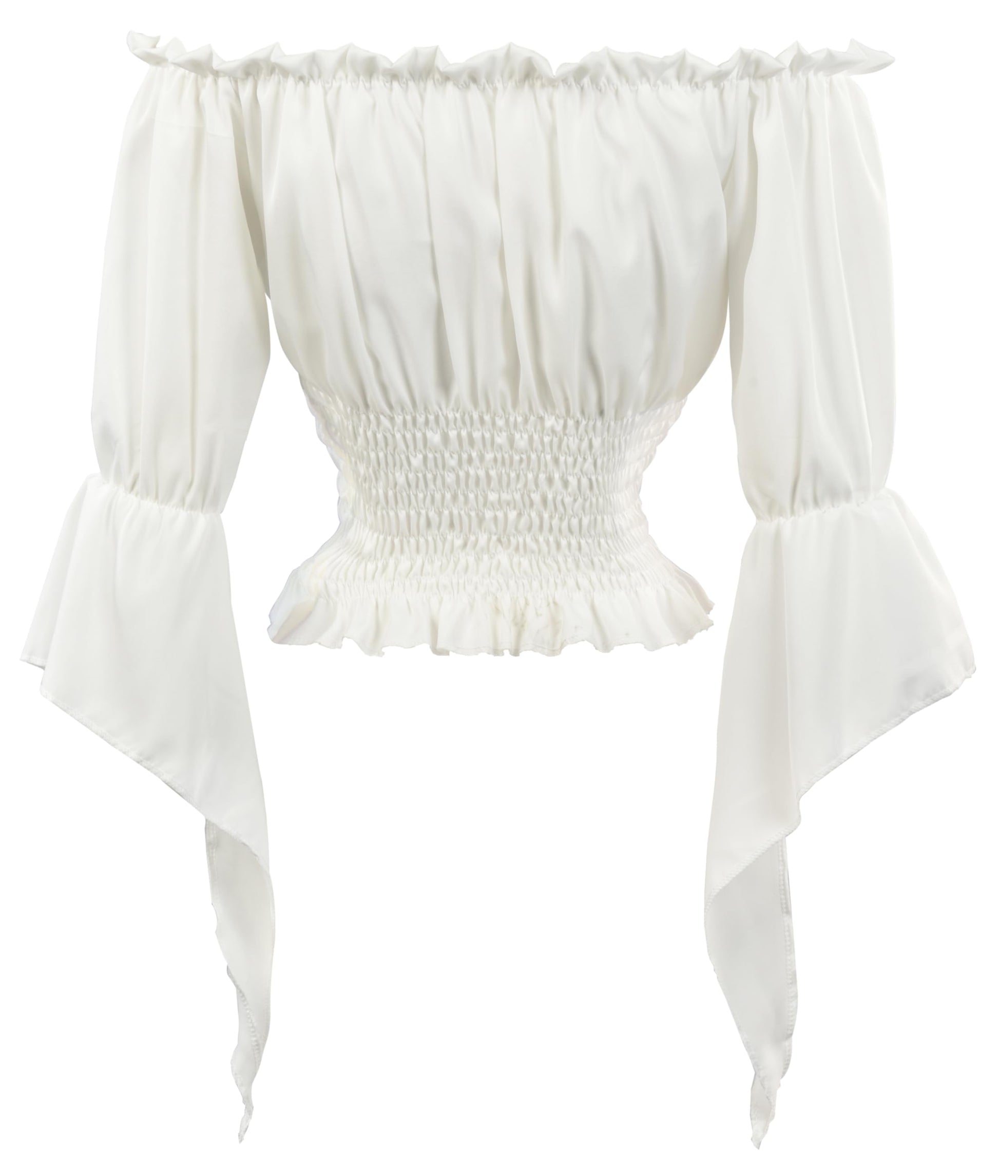 Women's Renaissance Blouse Long Sleeve Off Shoulder Medieval Pirate Costume Shirts Boho Tops (US, Alpha, Medium, Regular, Regular, White)