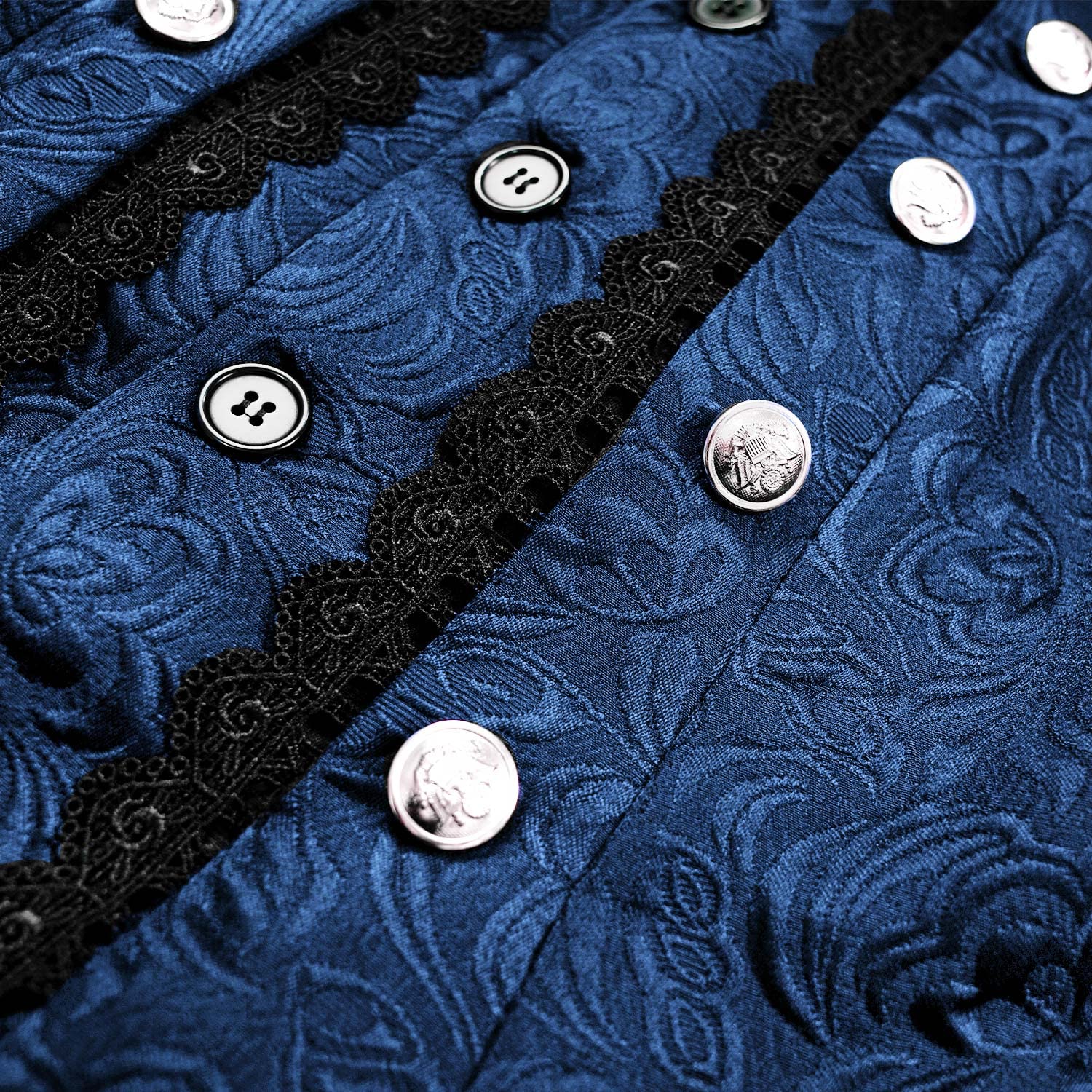- Features:This steampunk Pirate jacket is Long Sleeve,V-Neck, Button opening front,Corset style design, Two rows of decoration button at front, decorative patterns,Collar and neckline are decorated with lace,string on the back,can be adjusted to fit a variety of bodies.