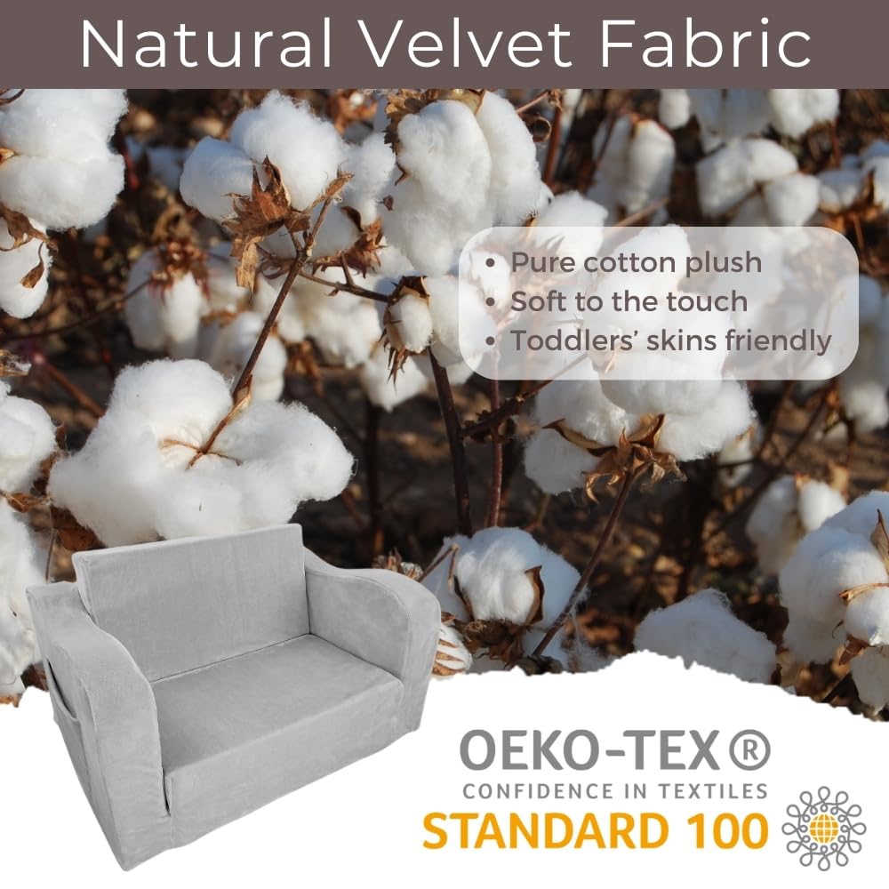 - 【Environmental Vacuumed Packaging】 Expect your toddler's fold-out couch to arrive vacuum-sealed in a compact roll. Unroll it and spread it out flat. We recommend waiting for 3-5 days for the sofa to expand and acquire its intended shape. For quicker results, remove wrinkles and restore the foam to its original size with a hairdryer in warm mode.