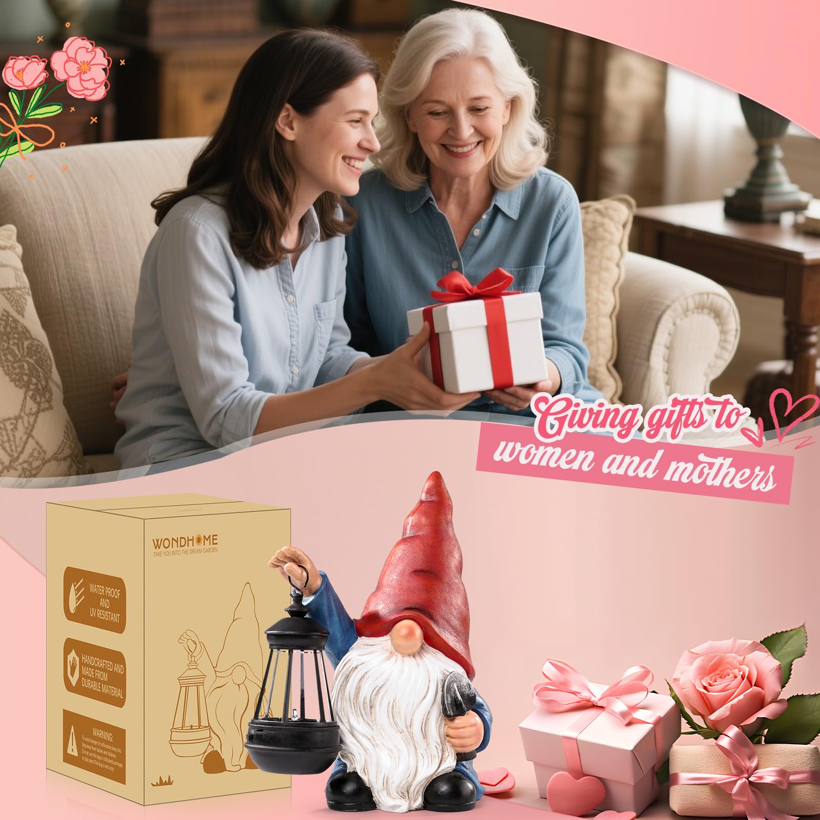 WONDHOME Garden Gnome Outdoor Decoration with Shovel Solar Gnomes Statue with Lantern LED Lights,Terrace Courtyard Lawn Patio Porch Decoration Mother's Day Christmas Housewarming Gift for Mom Women