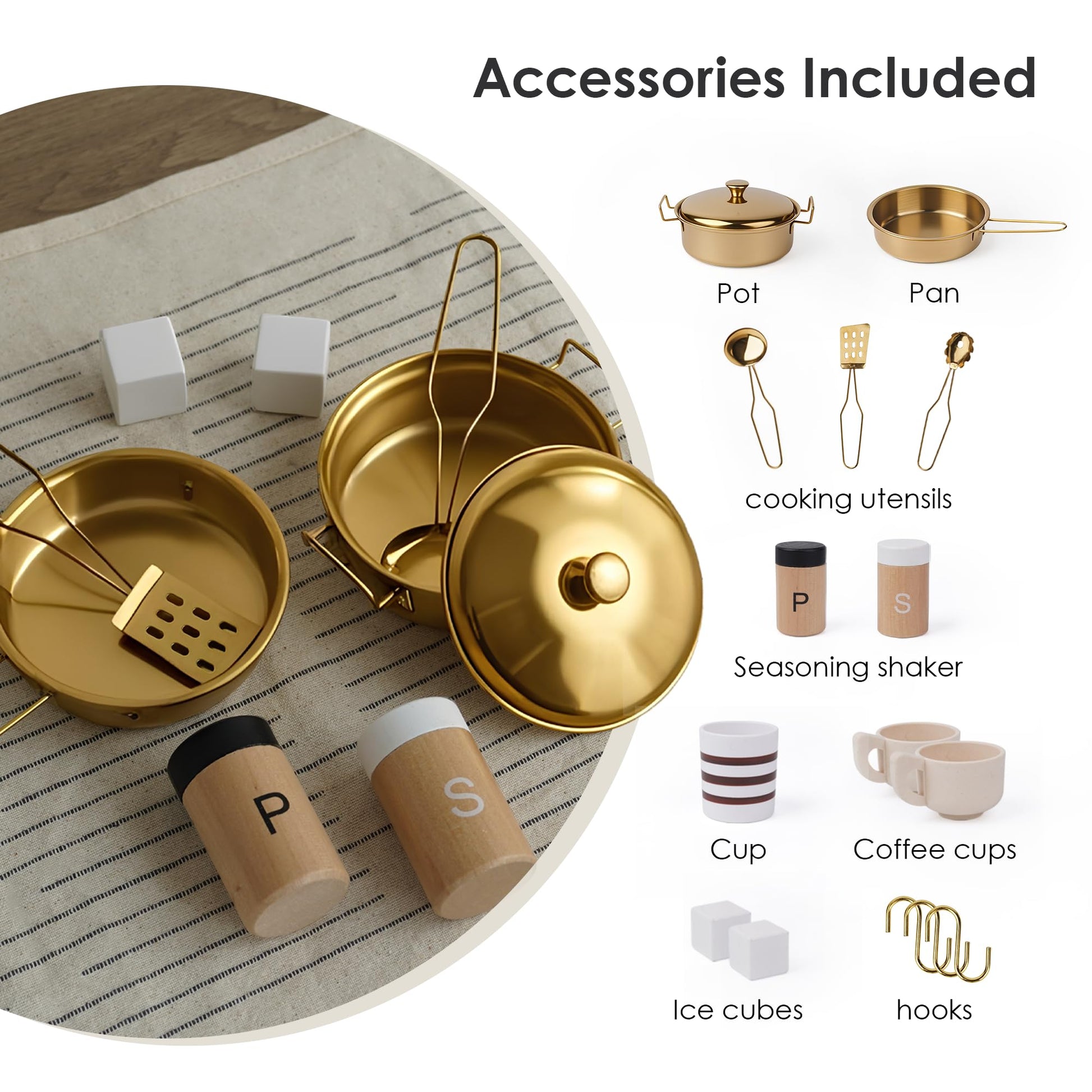 Wooden Play Kitchen for Kids– Realistic Appliances, Smart Storage & 15 Fun Accessories for Inspiring Pretend Play (Ages 3+)