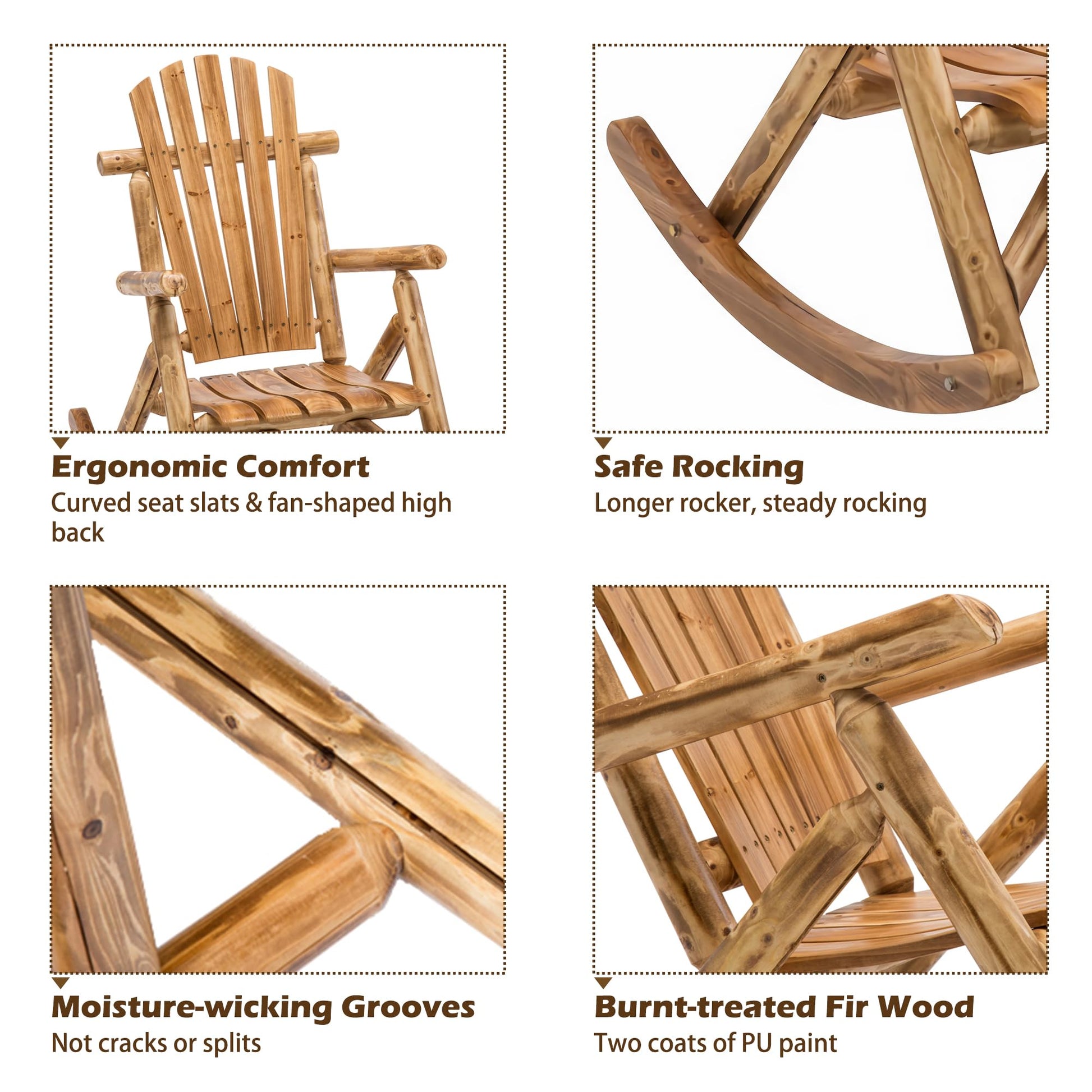 - 4-Season Adaptability – From snowy winters to humid summers, the moisture-wicking grooves and kiln-dried logs keep this outdoor wooden rocking chair stable through temperature swings, maintaining structural integrity year after year.