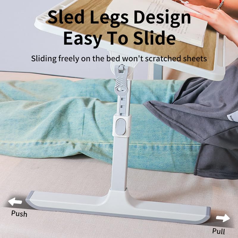 - Adjustable Laptop Bed Desk - Our bed table is designed with 8 adjustable heights 10.6″-15.4″ (27-39CM) and 4 adjustable angles (0-180°) .it can not only provide you a more comfortable posture and avoid pain, but also allow your personalized sitting preferences.