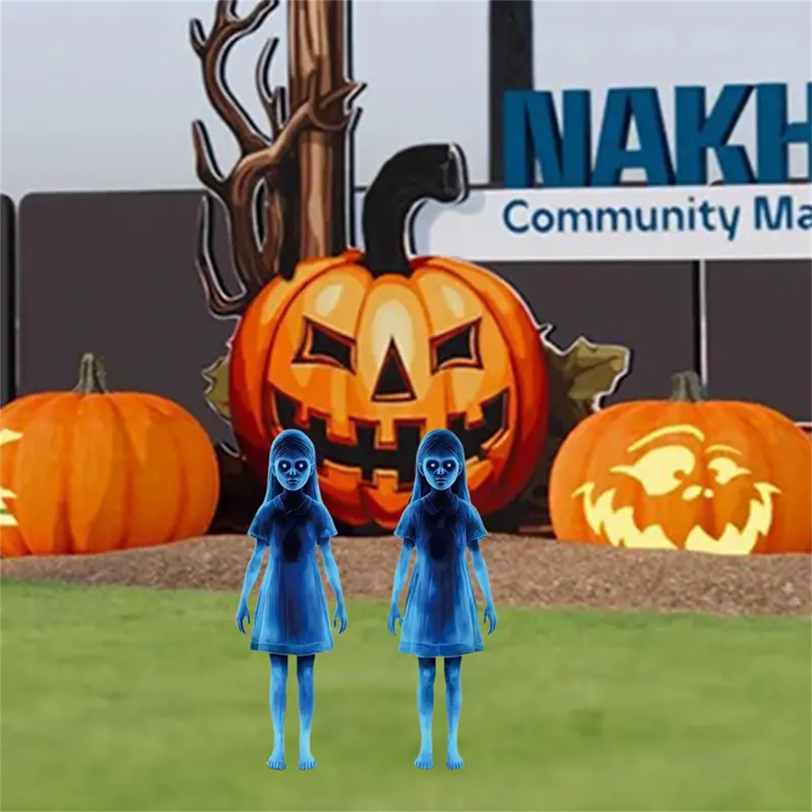 - Durable Material: Our 2pcs Halloween Haunted Twin Ghost Ground Stakes are crafted from high-quality iron, ensuring they withstand various weather conditions while maintaining their spooky charm. Waterproof and built to last, these horror girls garden decorations are perfect for any outdoor setup