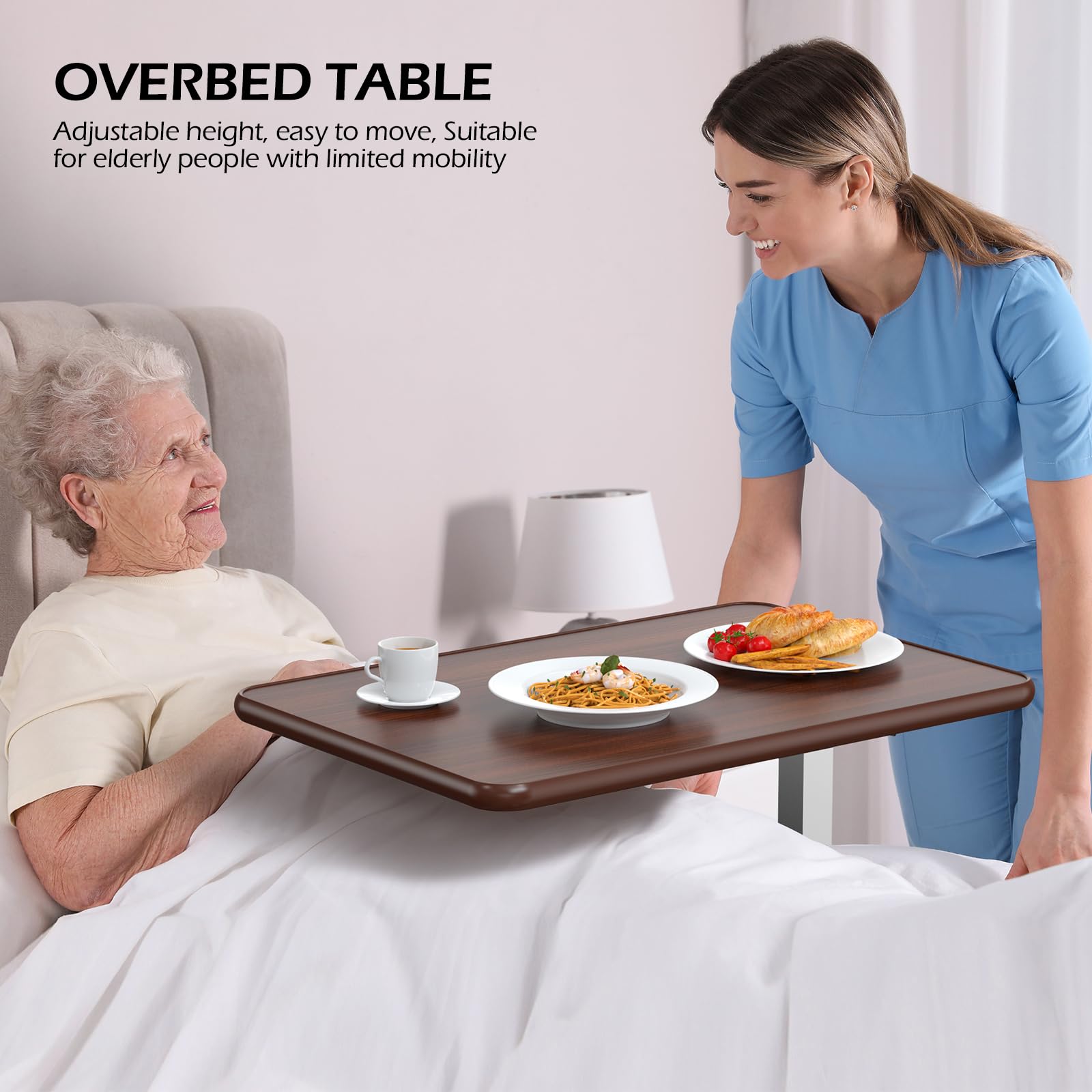 - Solid stability and lifelong reliability: Engineered with a reinforced H-shaped alloy steel frame and crossbar support, this Non-Tilt overbed table holds up to 50 lbs (books, meal trays, laptops) without sagging. The scratch-resistant, wipe-clean surface and rustproof finish ensure hygiene and durability for years.