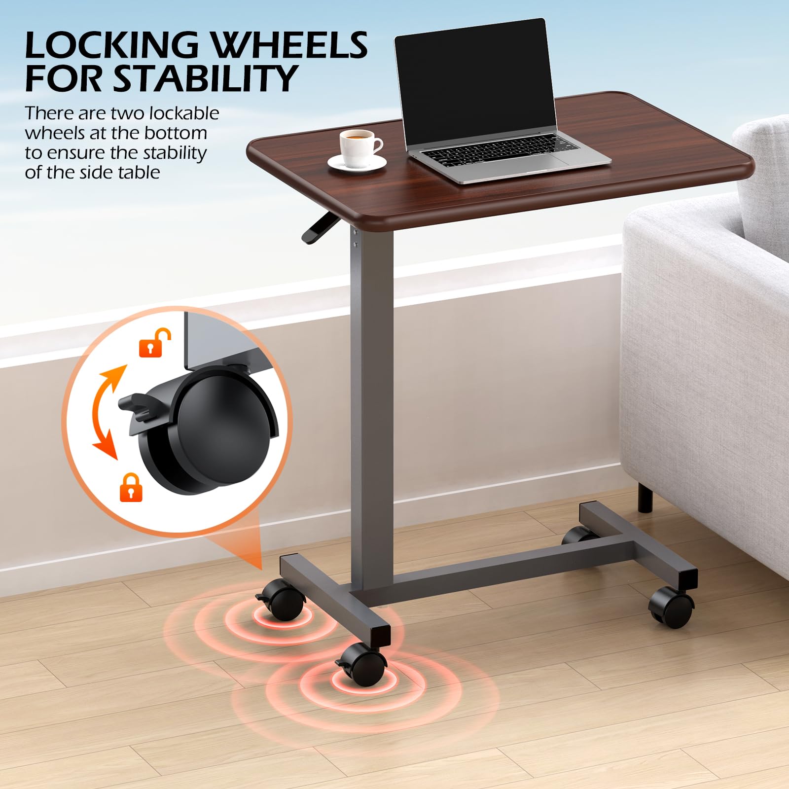 - Move Freely, Indoors & Outdoors: Built with Four 360° smooth-glide casters, this bedside table glide effortlessly across carpets, hardwood, and tiles—from your bed to the couch, it’s always right where you need it. Transport meals, medications, or laptops from the bedroom to the living room without wobbling or tipping—ideal for caregivers assisting bedridden loved ones.