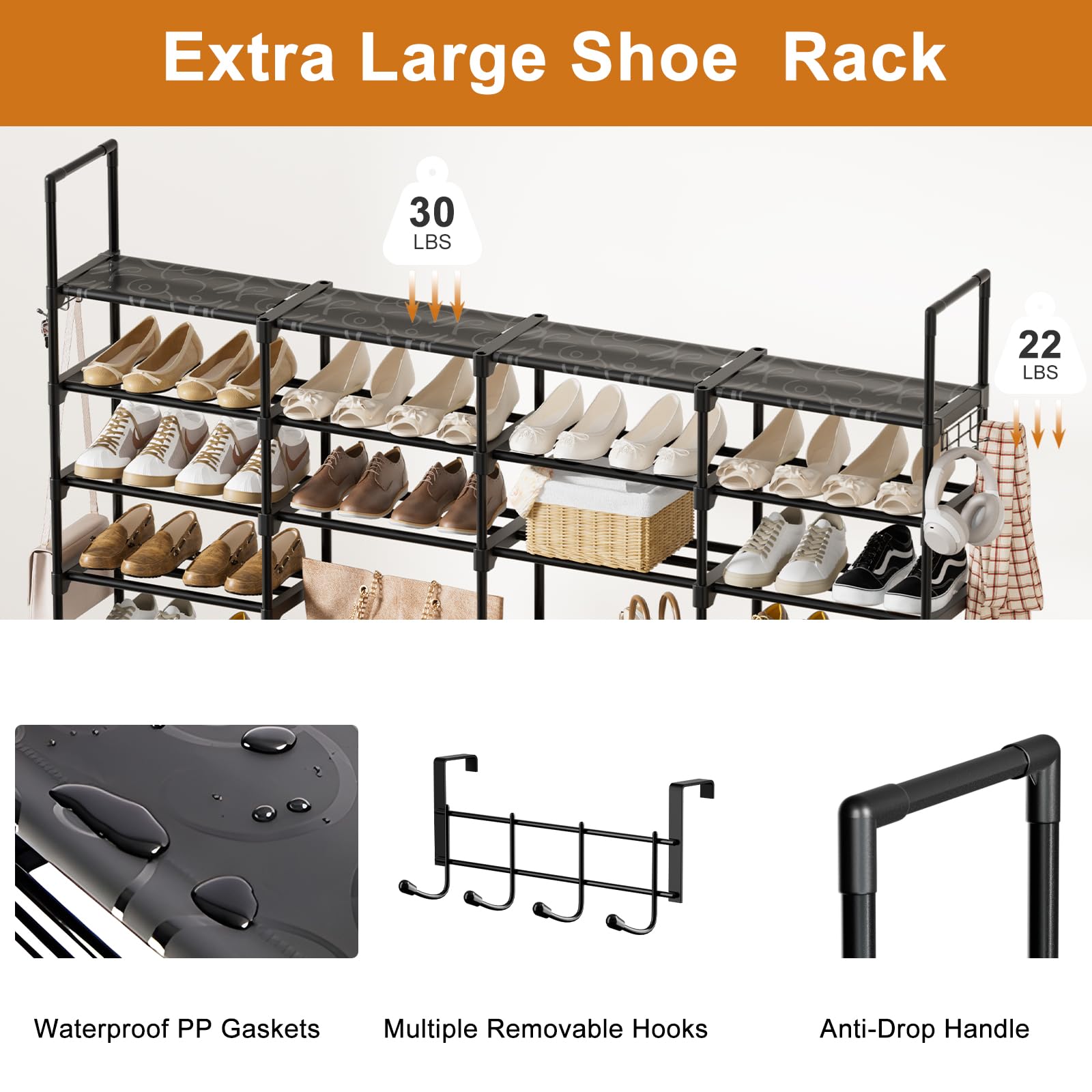- Easy To Assemble: We have detailed installation instructions, all accessories are coded, and the location of each accessory is marked.Comes with user manual to help you assemble the extra large shoe rack quickly and easily.