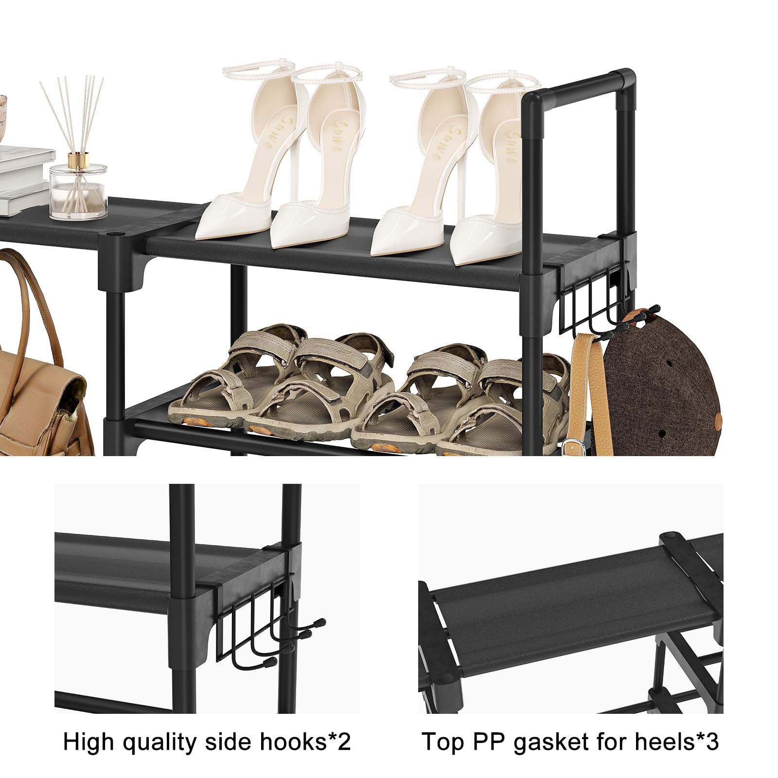 - 9-Tier Shoe Rack:Featuring a compact profile, you can easily set this shoe rack in the hallway, living room, bedroom,or garage. It helps you maximize your vertical space while saving more floor space for other items.The product is designed to be disassembled and assembled freely. You can remove the five layers to store boots, high heels or other larger accessories to suit different scenarios