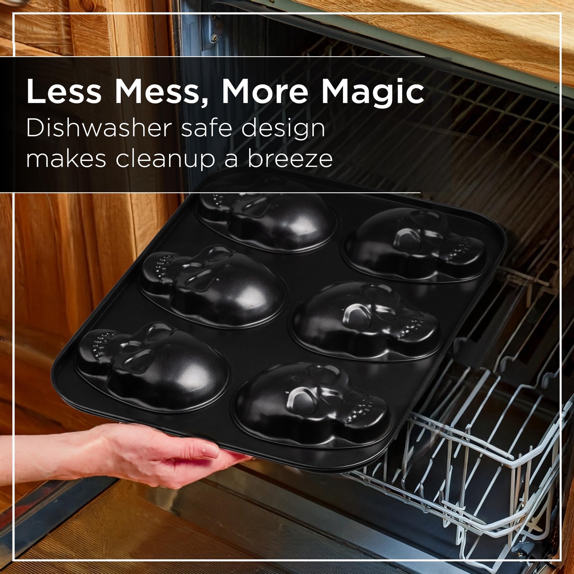 - Embrace Baking Mastery - Elevate your baking game and make your kids smile with this haunted skull cakelette pan. Great for Halloween and Day of the Dead celebrations. Dishwasher and oven safe.