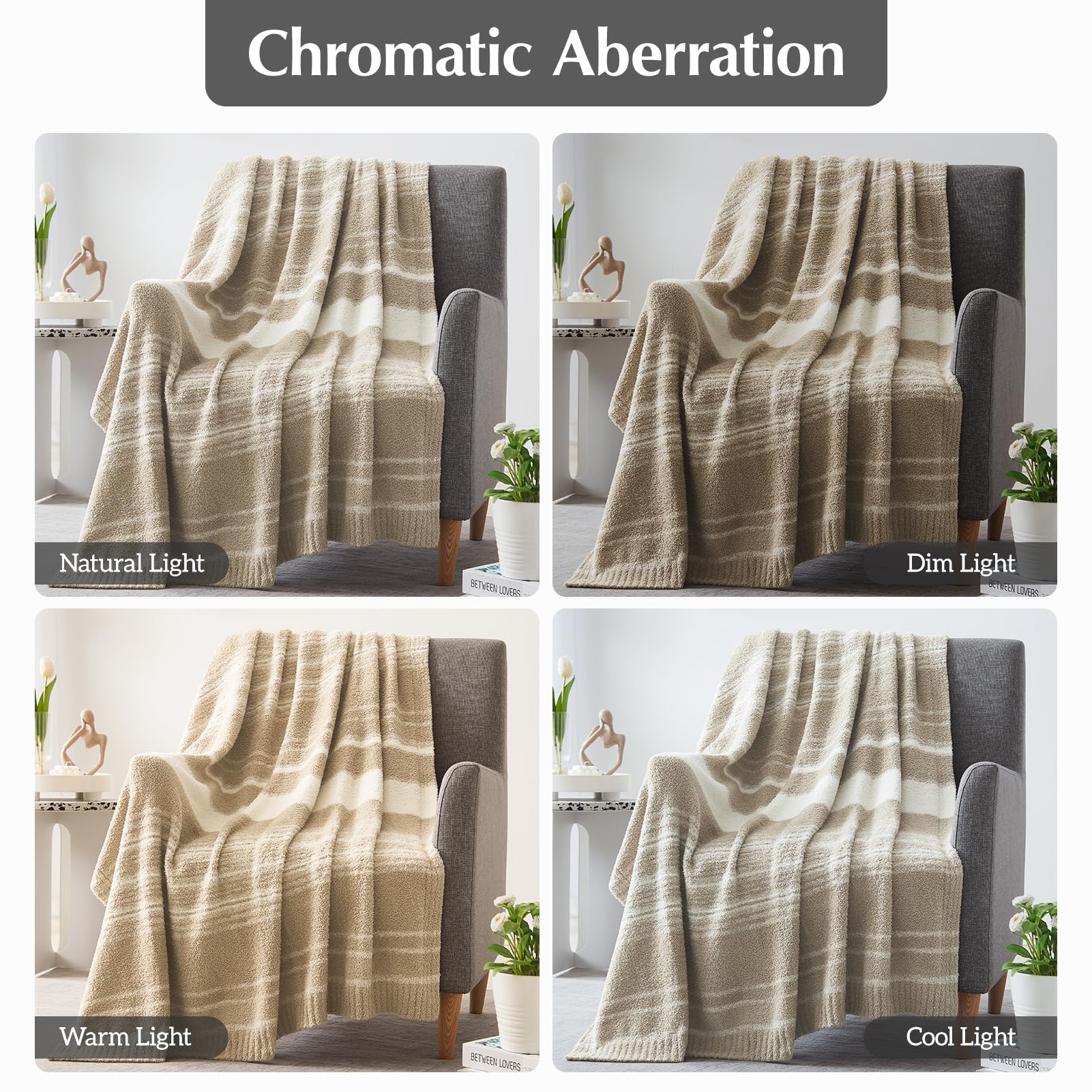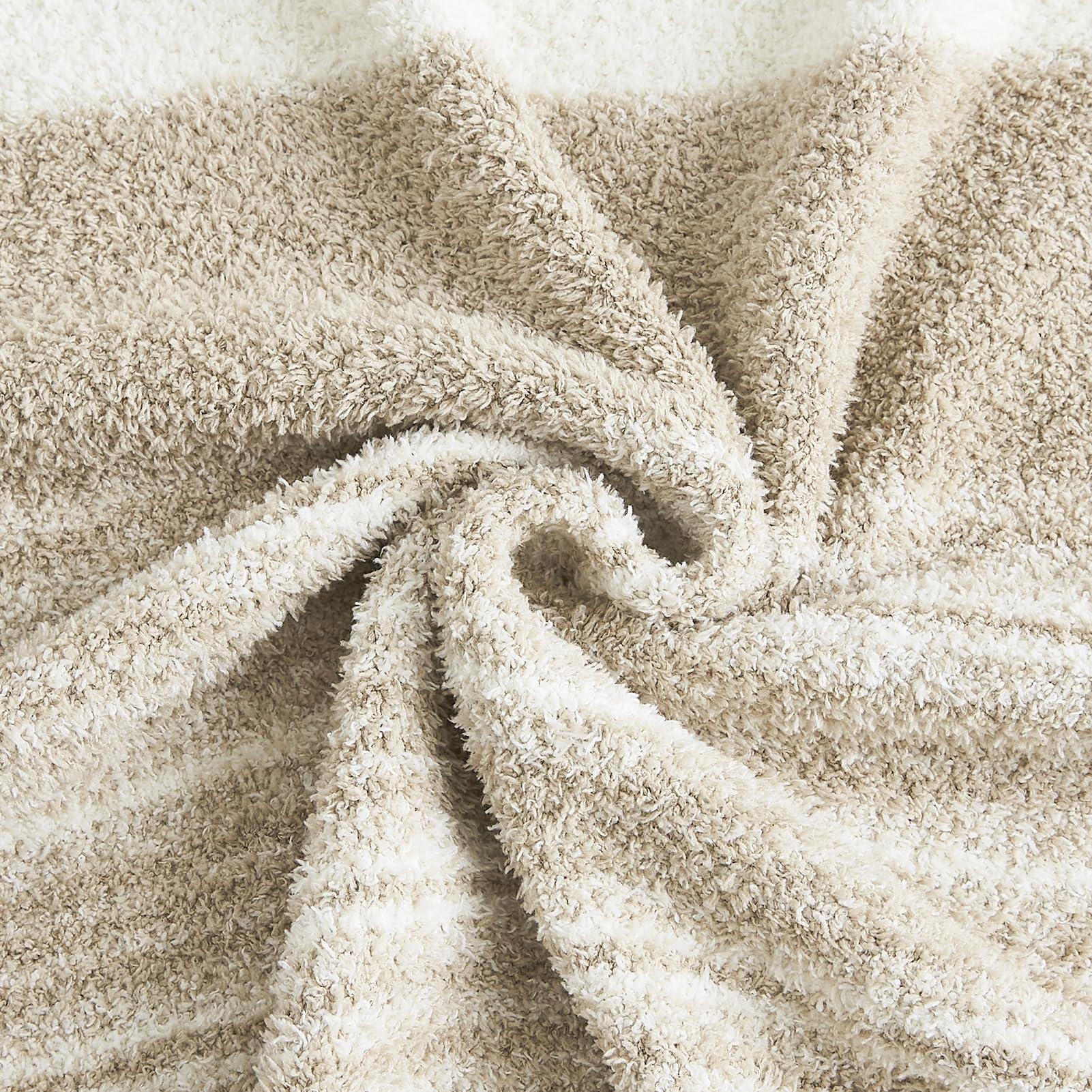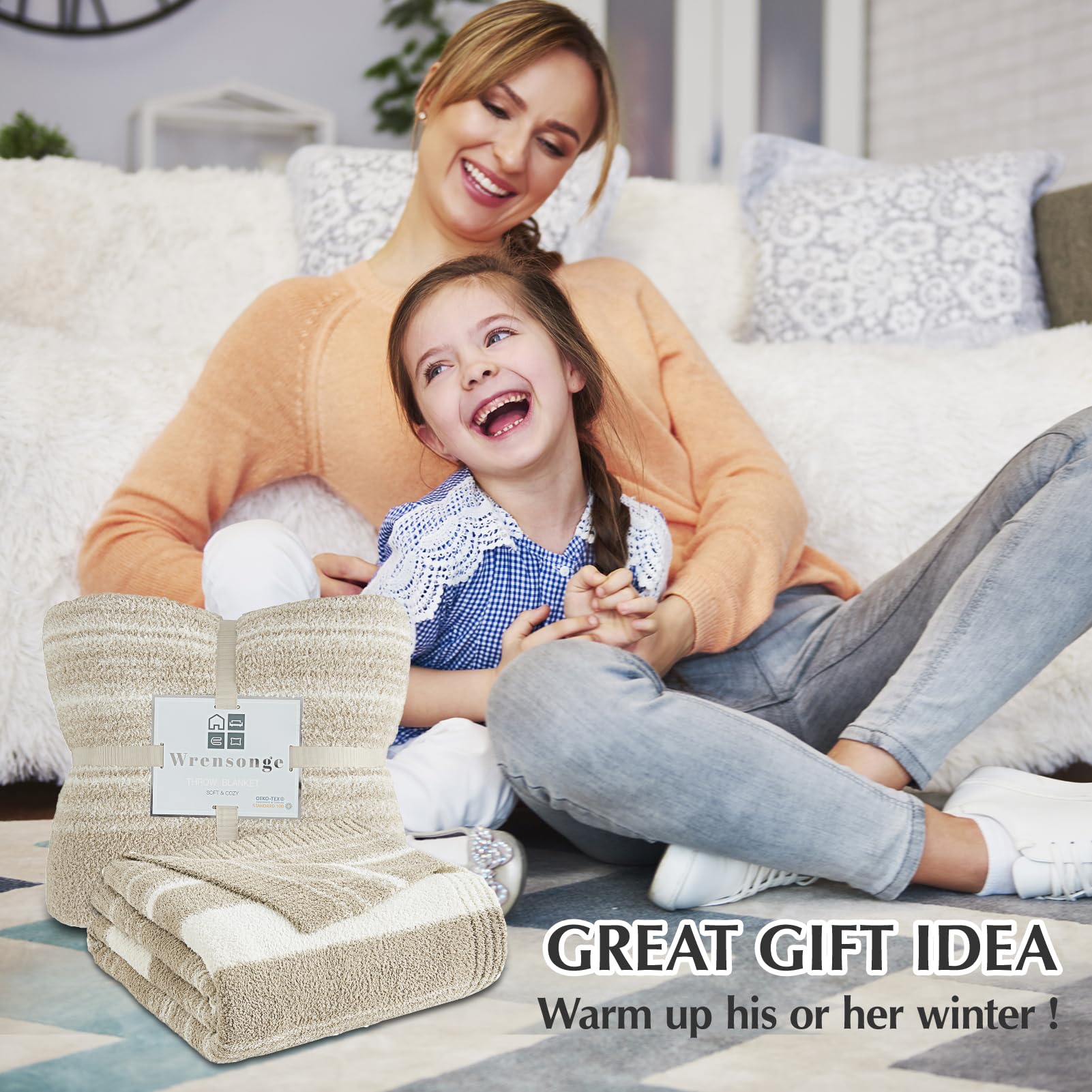 WRENGONGE Khaki Throw Blanket, 60x80 Soft Cozy Striped Throw Blankets for Couch, Sofa, Bed, Travel, Lightweight Fluffy Warm Plush Decorative Blankets for Women, Men,Kids Gift
