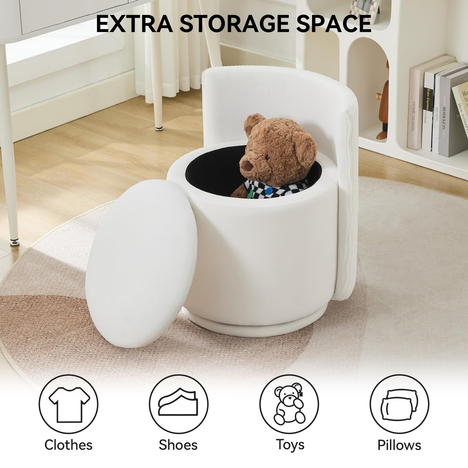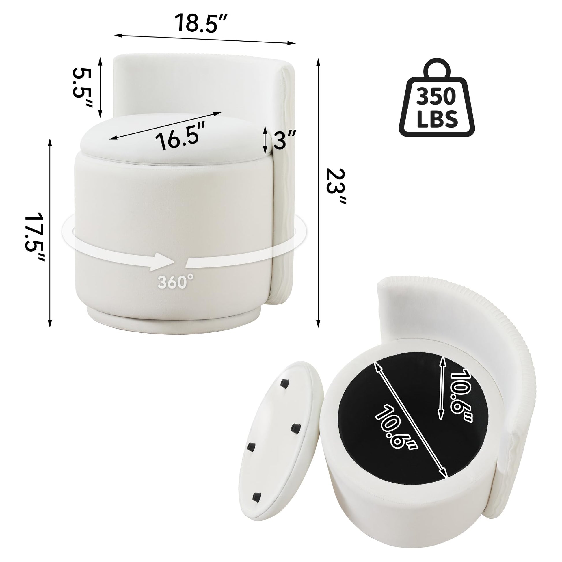 WUTUTUEE Velvet Vanity Chair with Storage, 360° Swivel Makeup Chair with Wave Back, No Assembly Small Accent Stool for Bedroom, Dressing, Living Room, White