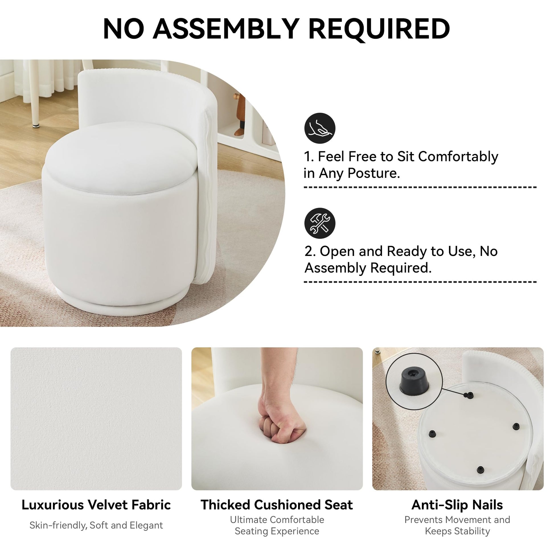 - No Assembly Require: Skip the tools and save time—this vanity stool arrives fully assembled. Ideal for small spaces, apartments, dorms, nurseries, and anyone looking for stylish functionality in one piece.