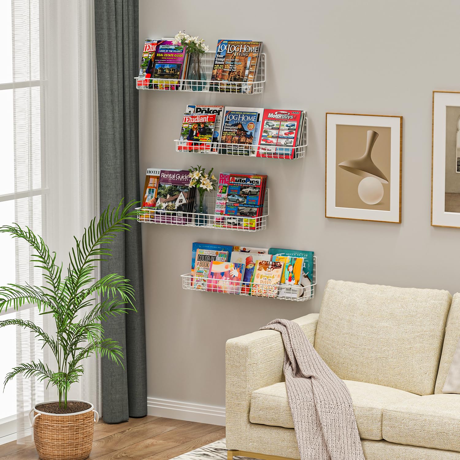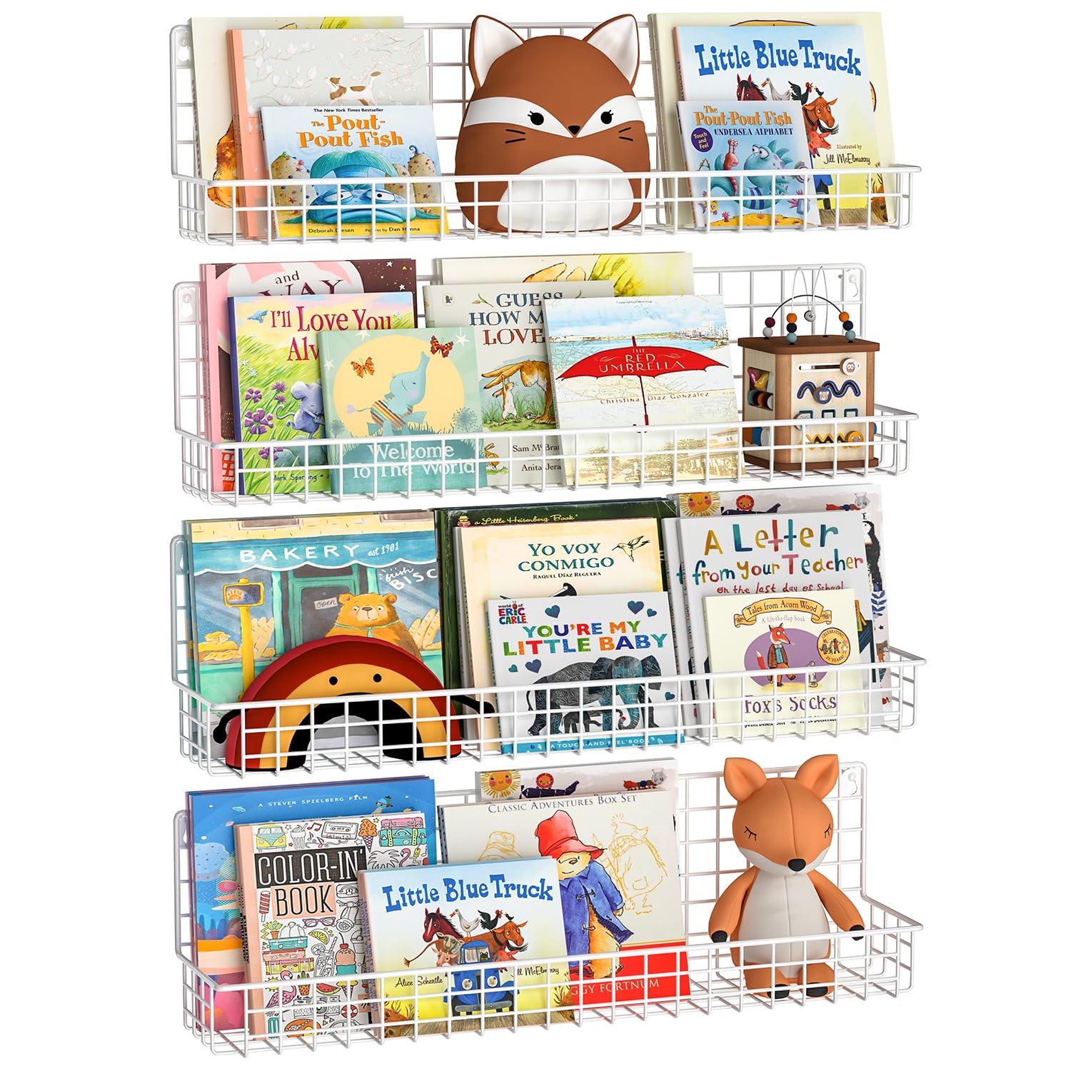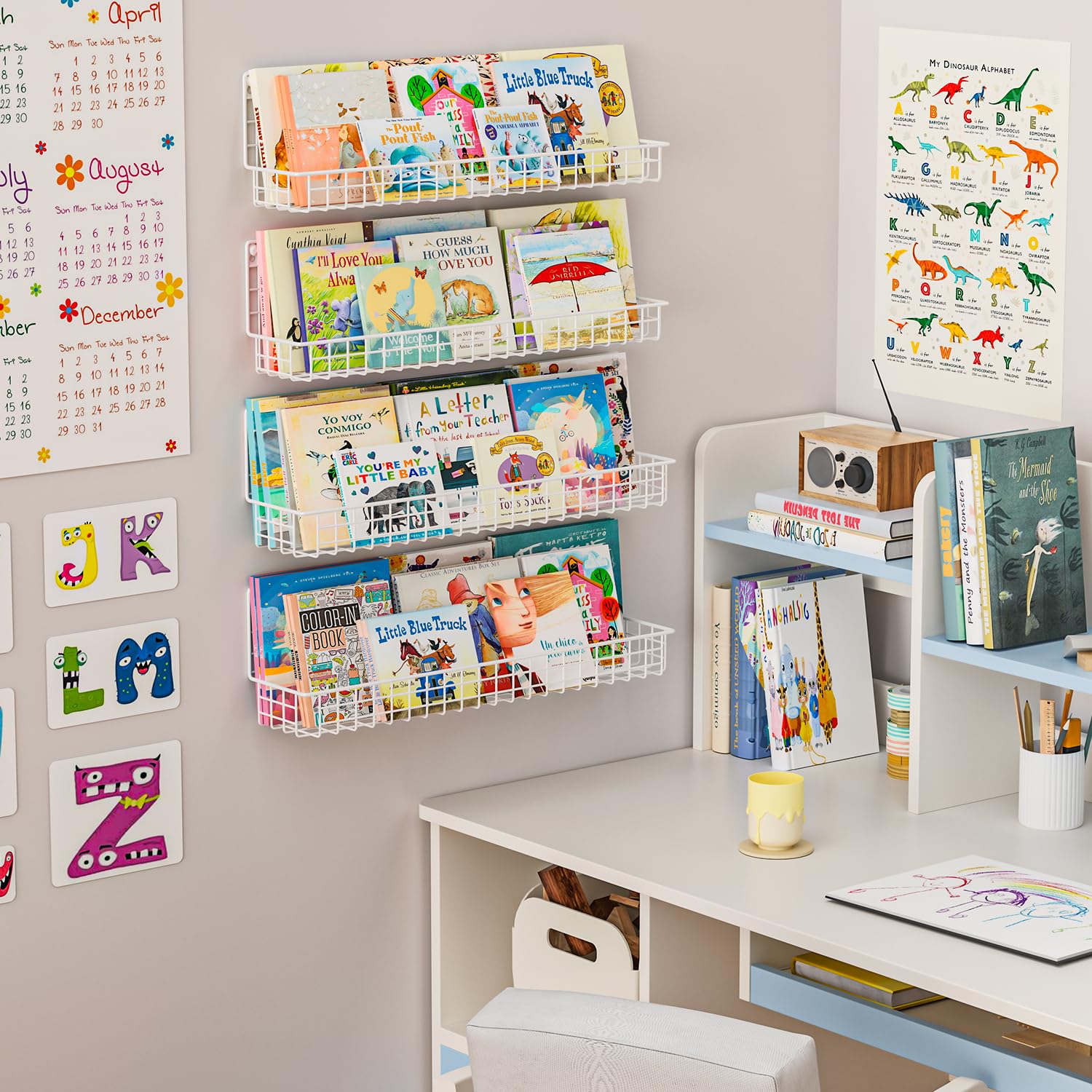 - Effective Space Saving: Our hanging wire bookshelves effectively use the space of the wall, and create a safe and comfortable children's room for your kids, keeping books, toys organized . You can use this kid bookshelf to create a cute room decoration.