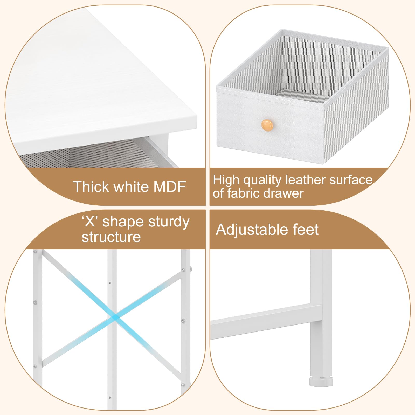- [ Sturdy and Stable Construction ]: Crafted from high-quality thick MDF board and durable metal, this vanity table features an X-shaped frame for extra stability. Adjustable feet ensure it stands firm on uneven floors