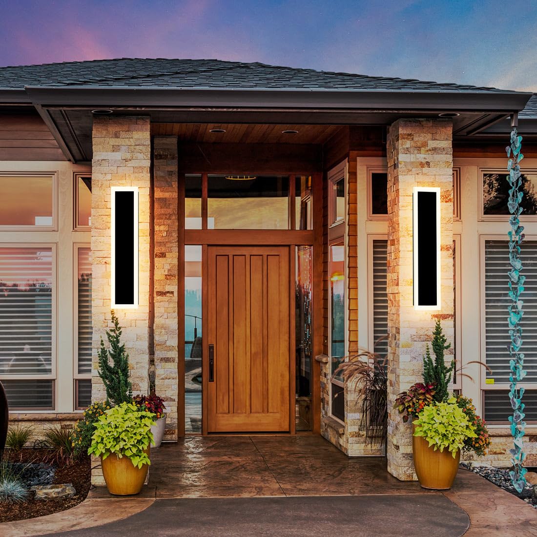 Xbuyee 2-Pack 24IN Modern Outdoor Wall Light LED Long Wall Lighting Fixture IP65 Waterproof Wall Lamps, Dimmable 24W 2200LM Black Wall Sconce, 3000K/4000K/5000K Selectable, ETL