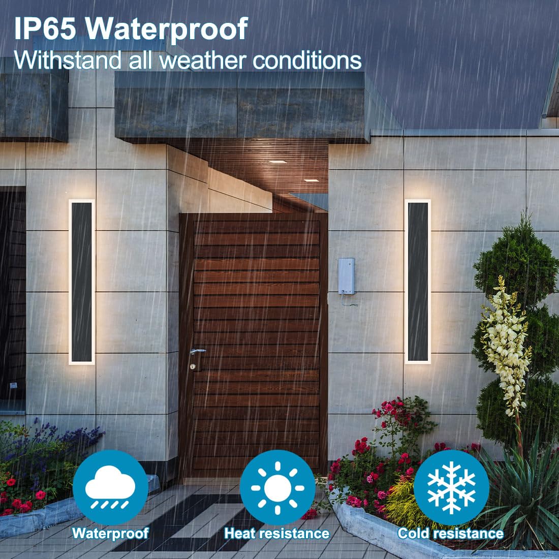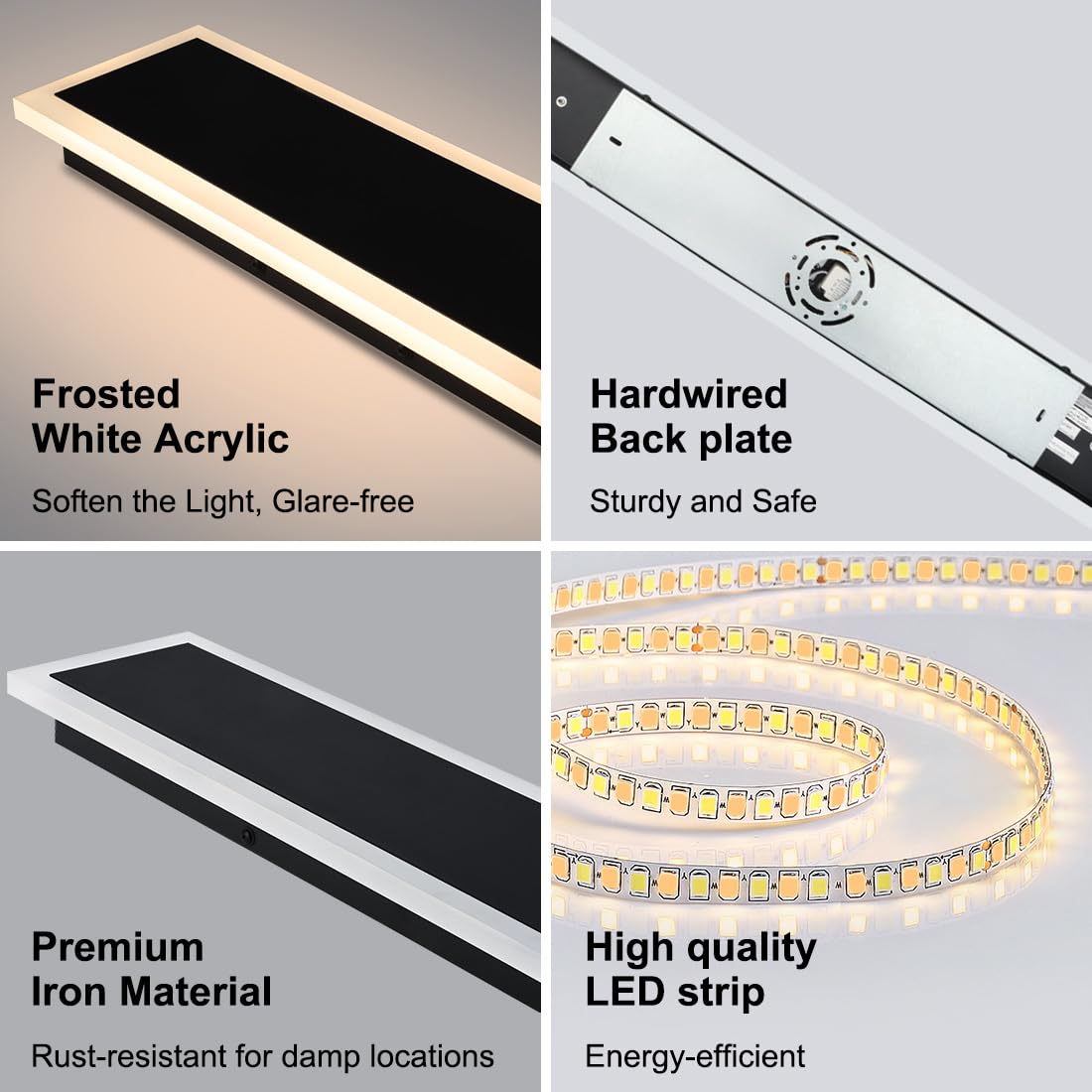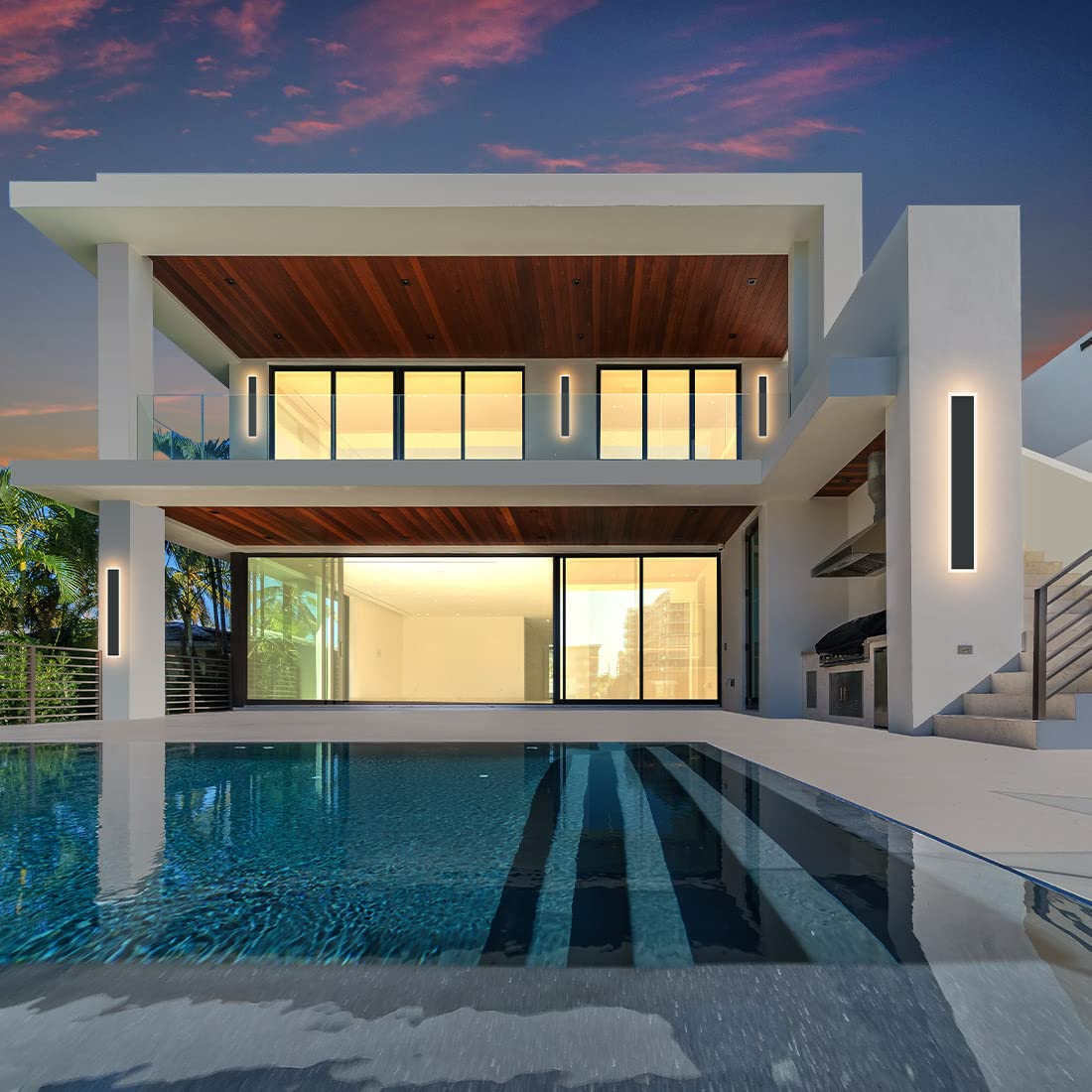- [Sleek Modern Design] The modern outdoor wall lighting features frosted white acrylic frame and matte black finish in long clean lines, creating a contemporary and simple look, can also be mounted vertical or horizontal perfectly blended with your home decor. 【Dimension 5.9"x36"x2"】