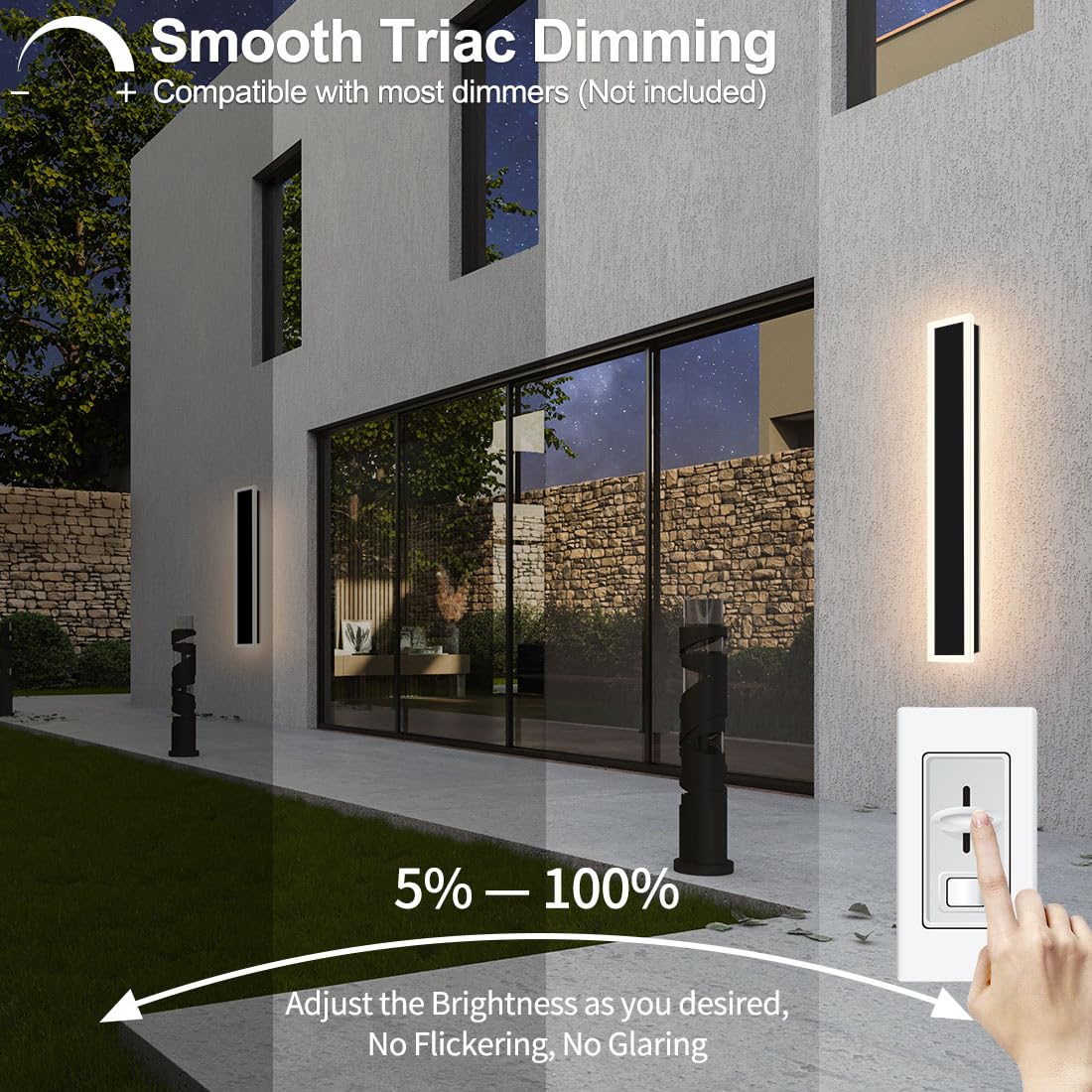 - [5%-100% Smooth Dimming] The black outdoor modern wall sconce compatible with most LED dimmers (not included) on the market, allows you to control LED output intensity to achieve optimum lighting effect and no dazzling, protect your eyes.