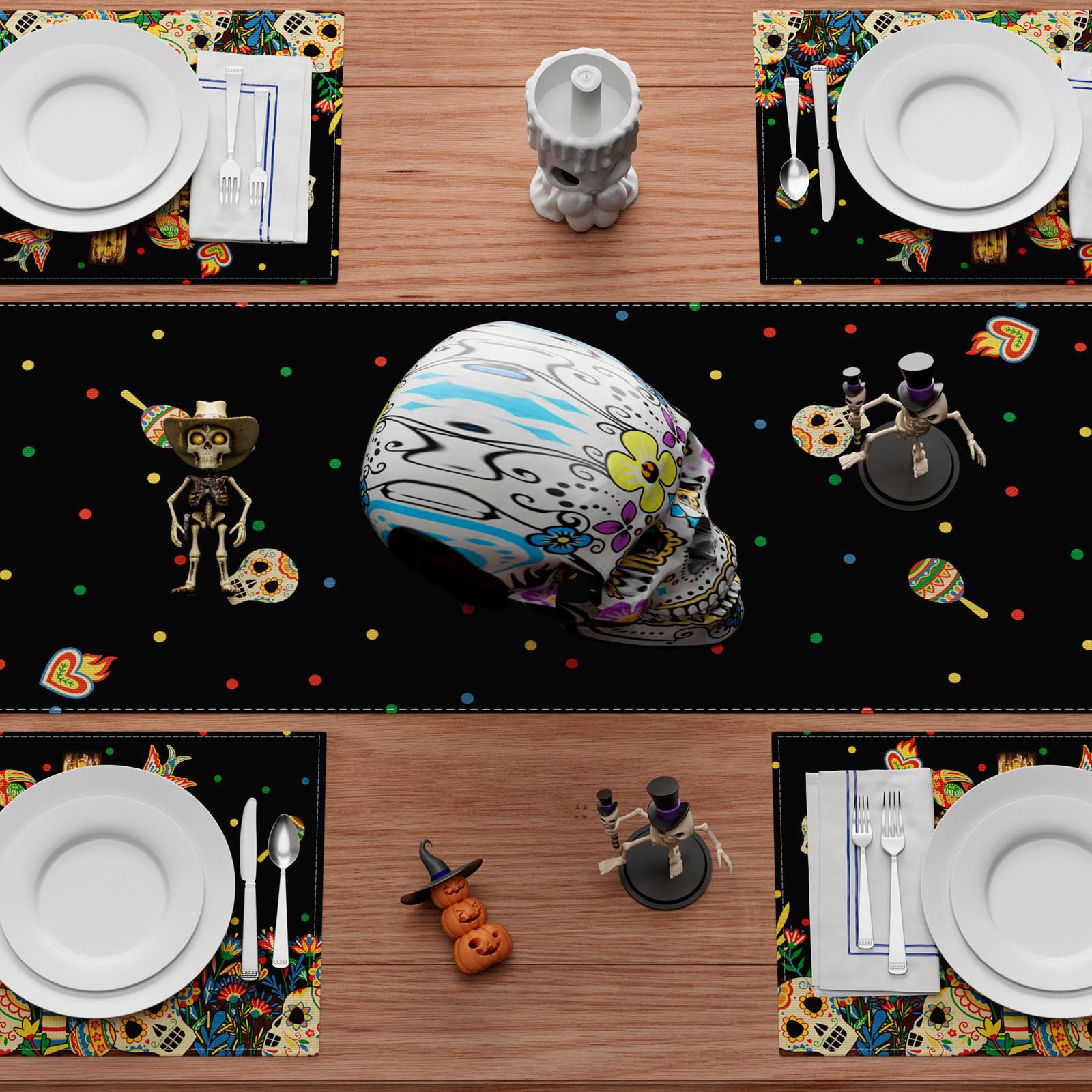 Details: XCHI Dia De Los Muertos Table Runner Cross Sugar Skull Birds Flowers Day of The Dead Mexican Table Decoration for Home Kitchen Dining Holiday Fiesta Themed Party Decor 13x72 Inch