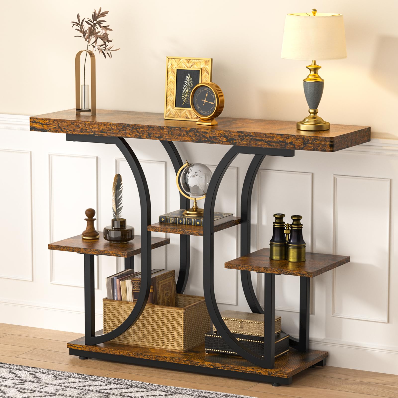 XCSOURCE Console Table, 42.5" Entryway Table with Storage Shelf, 5-Tier Sofa Table Behind Couch, Hallway Accent Tables for Living Room, Entrance, Foyer, Rustic Brown