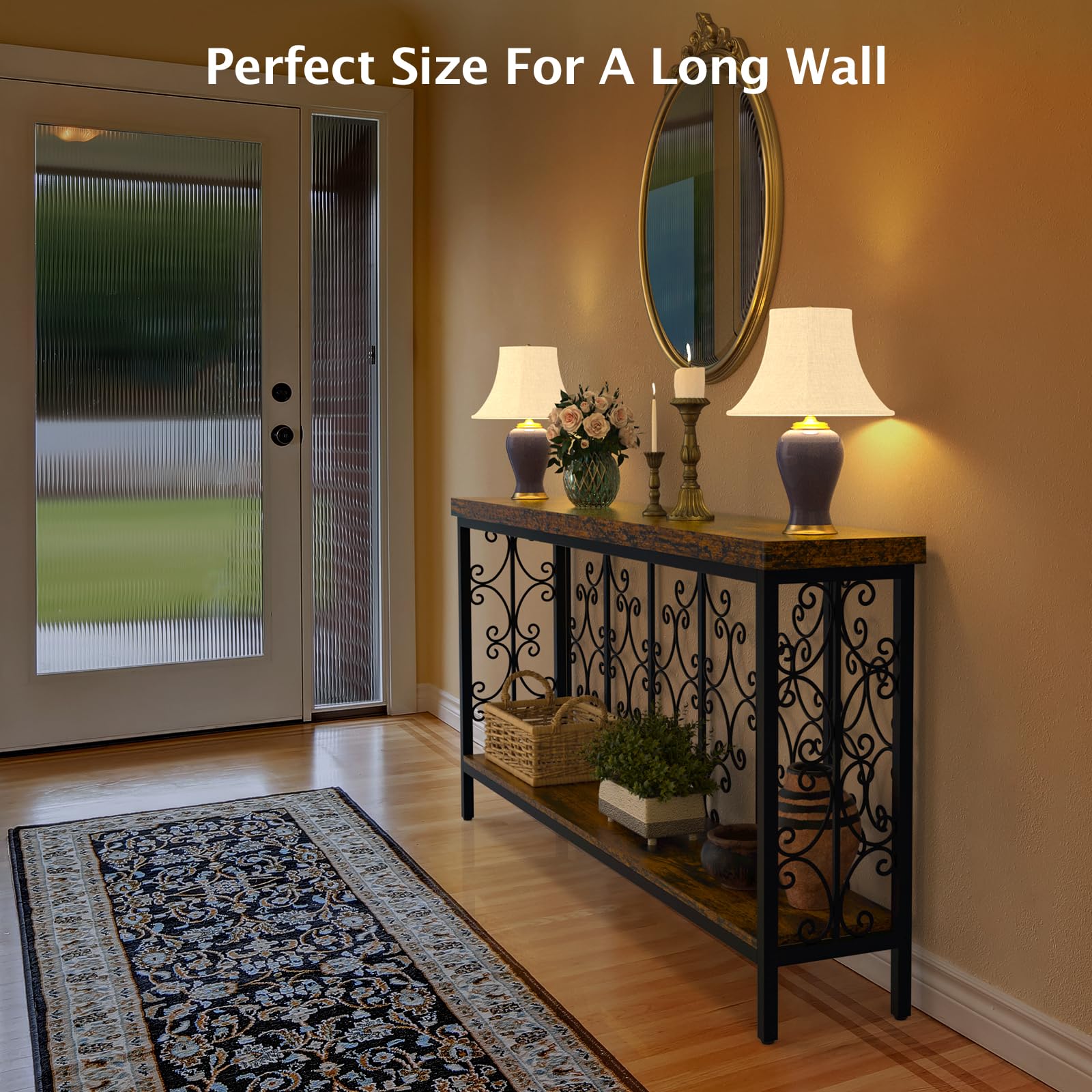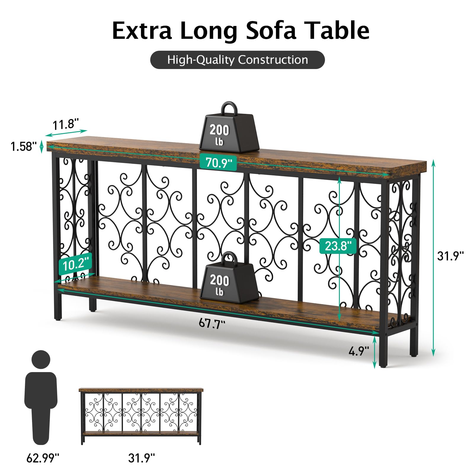 XCSOURCE Console Table, 70.9" Entryway Table with Storage Shelf, Extra Long Sofa Table Behind Couch, 2-Tier Hallway Accent Tables for Living Room, Entrance, Foyer, Rustic Brown