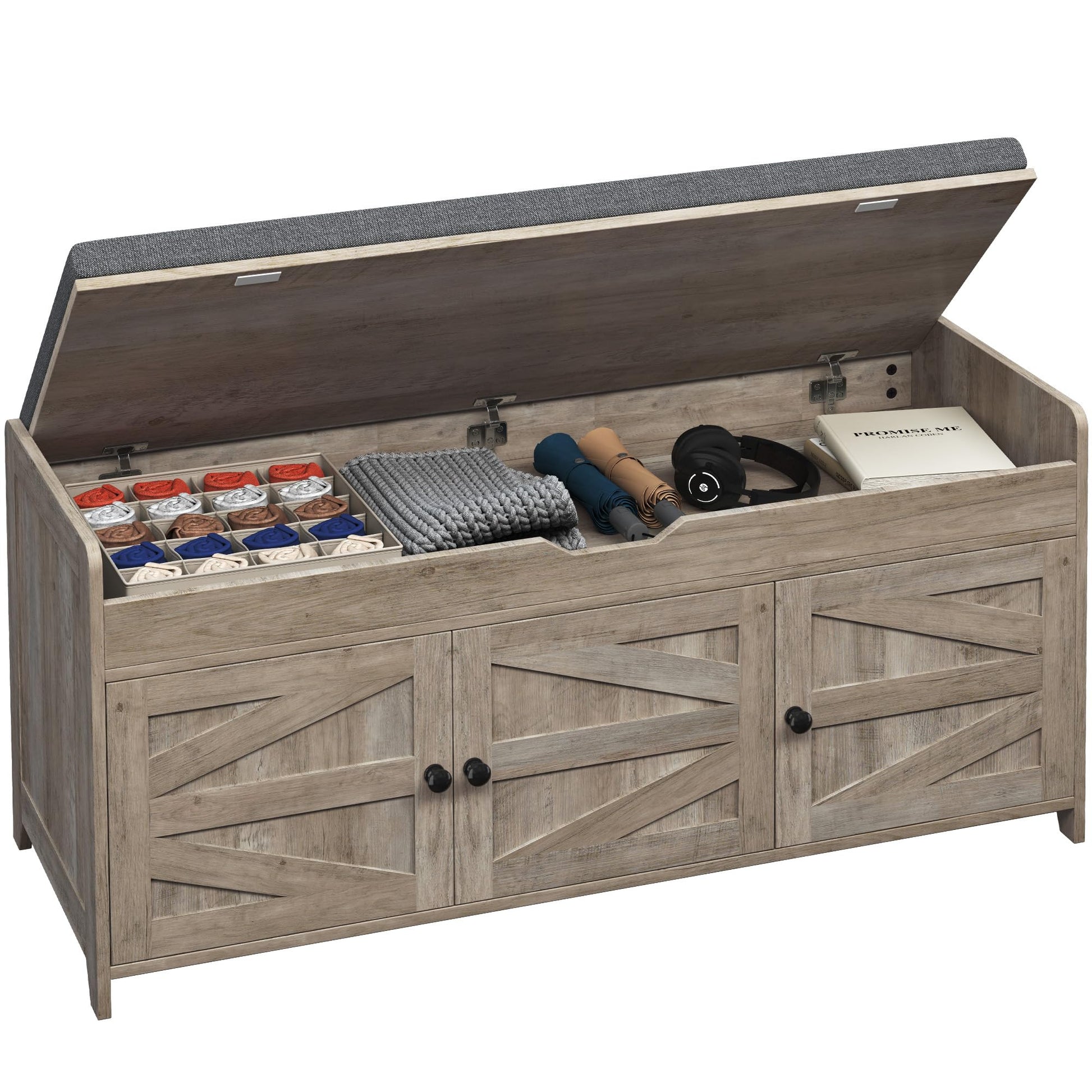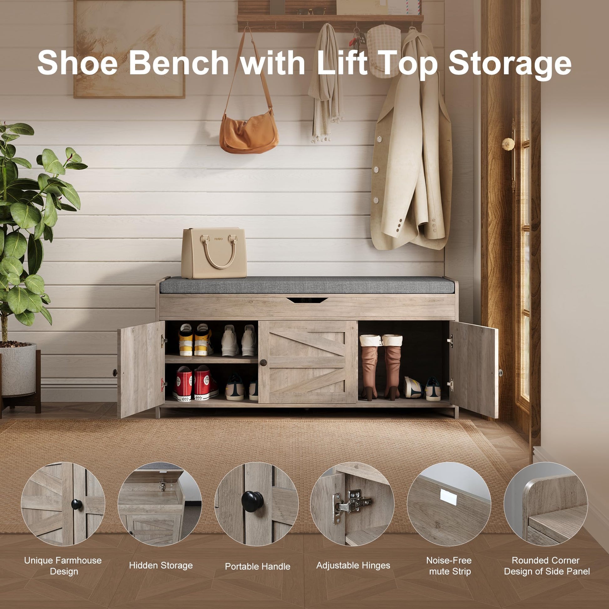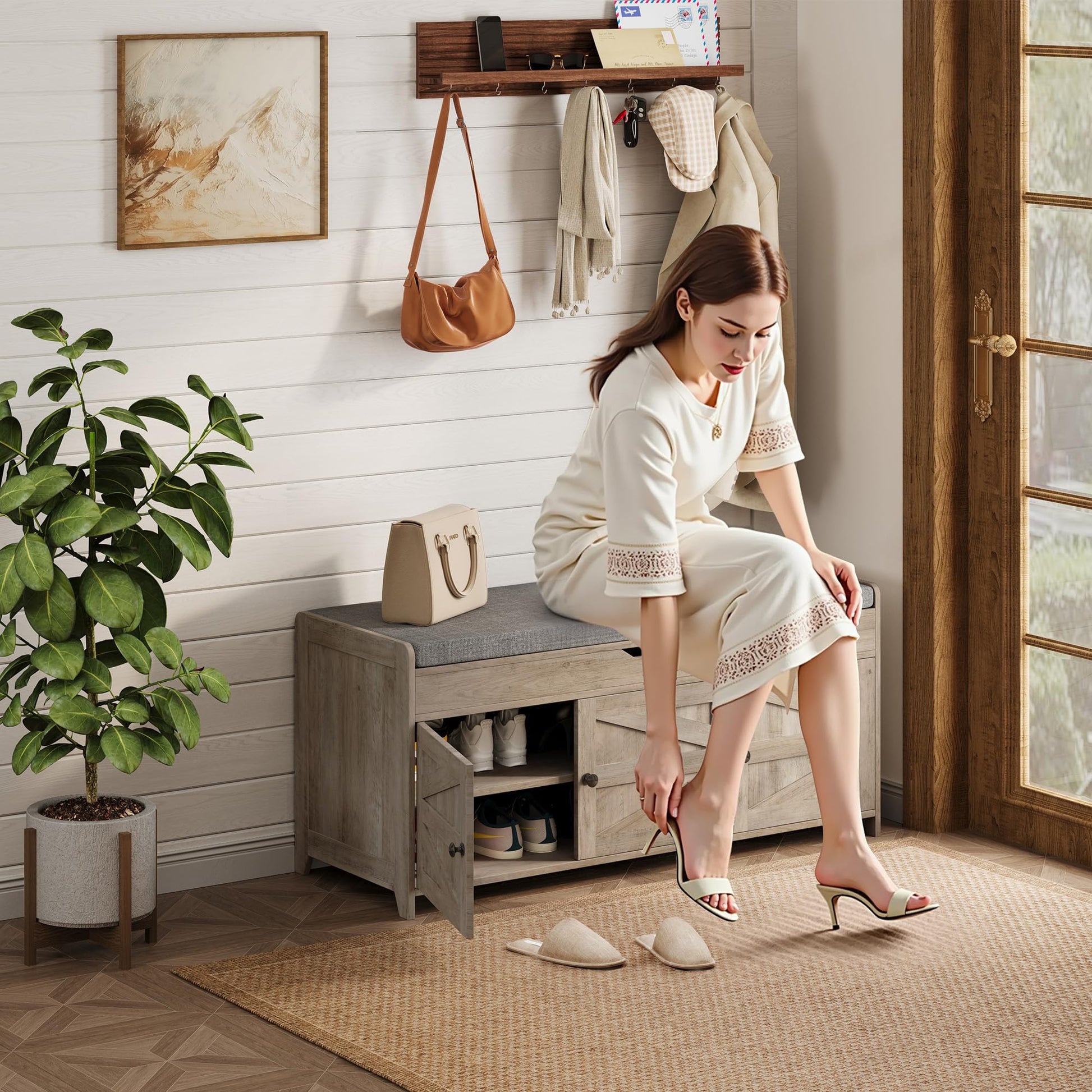 Xdwwhome Shoes Bench with Cushion, Storage Bench, Entryway Bench with Lift Top Storage, 43.3" Wooden End of Bed Bench, Shoe Bench Cabinet for Living Room Bedroom Hallway Garden, 330 lbs, Light Grey