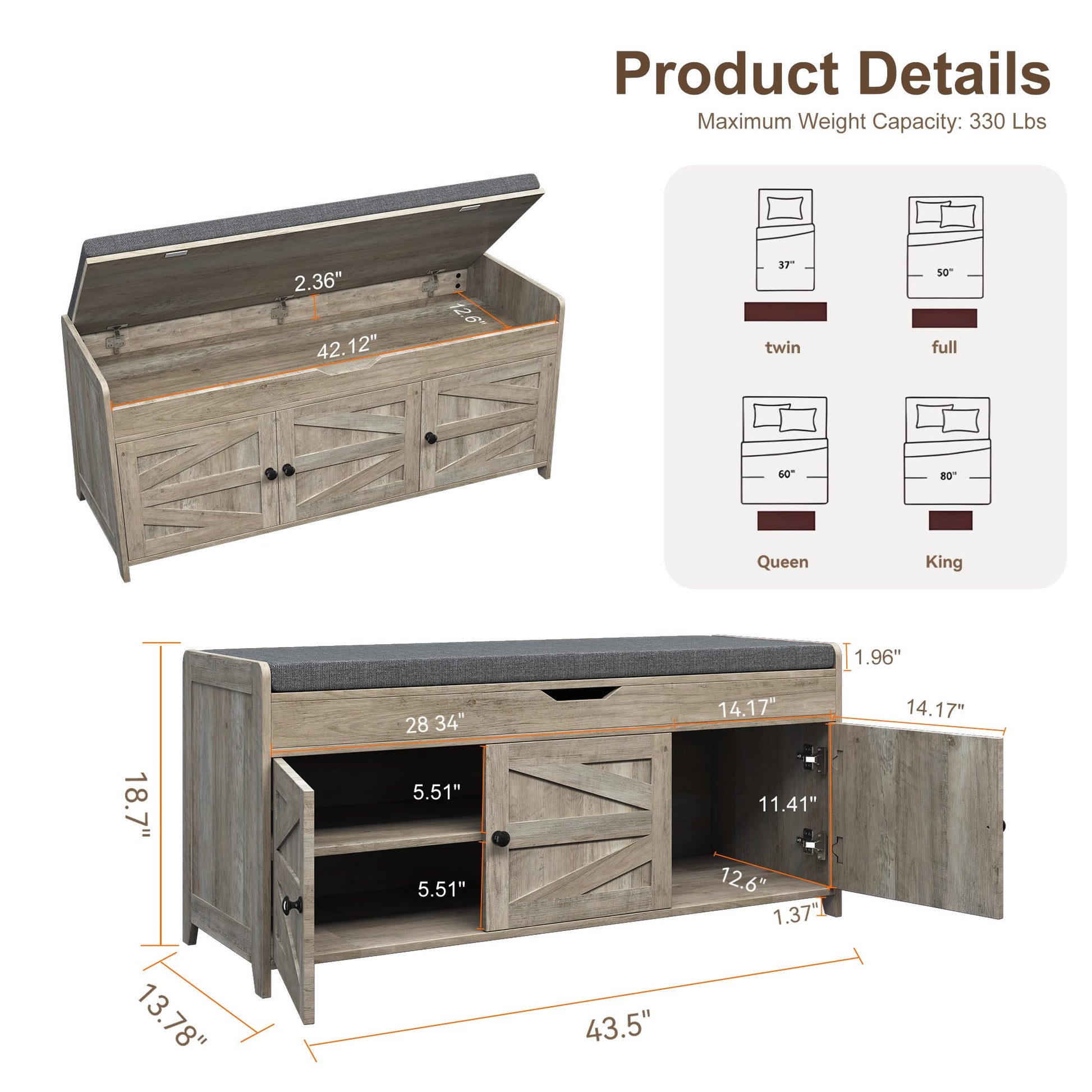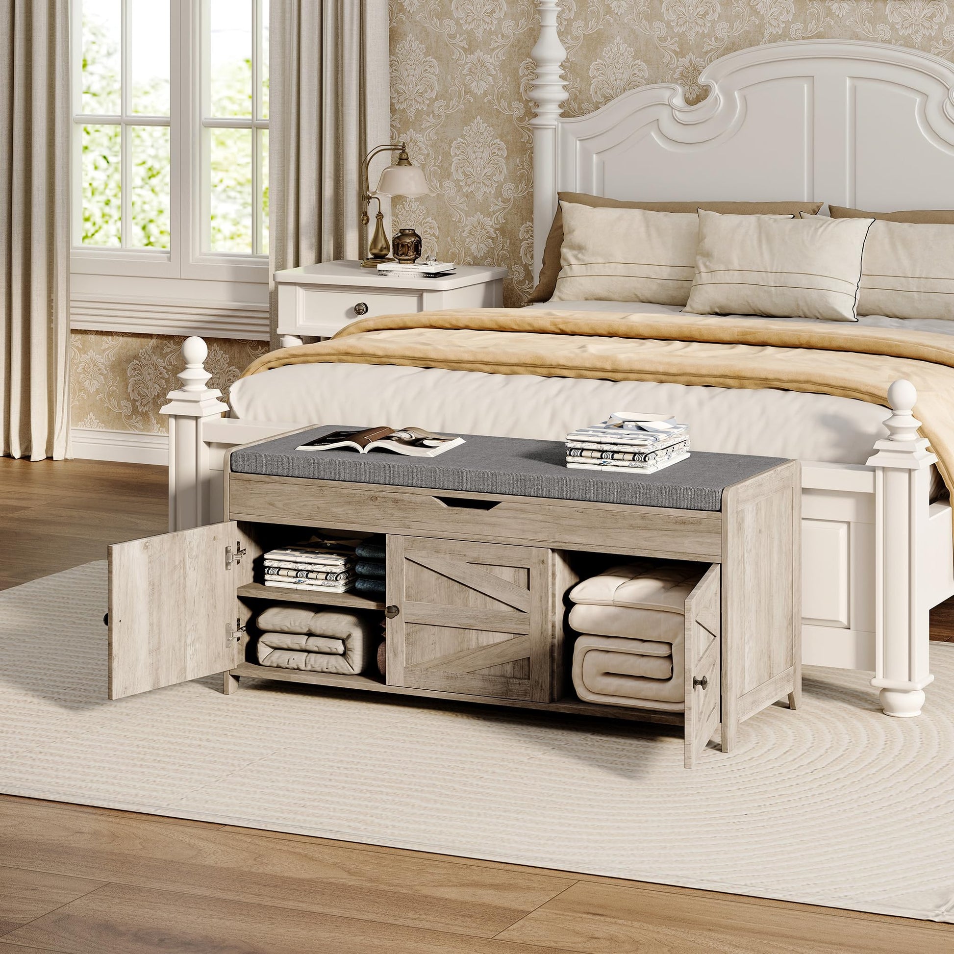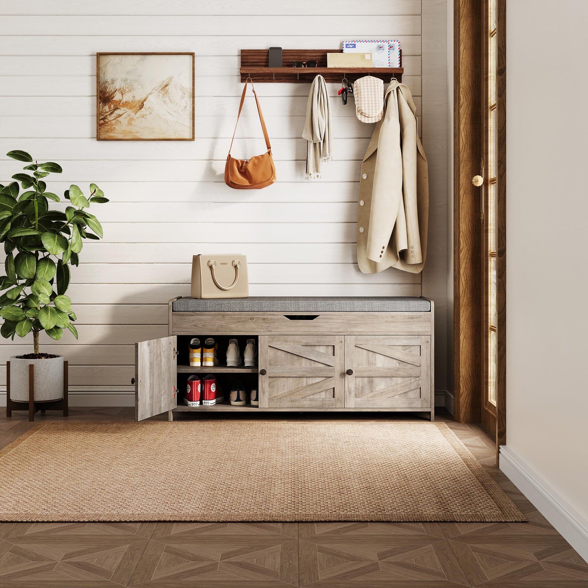 Xdwwhome Shoes Bench with Cushion, Storage Bench, Entryway Bench with Lift Top Storage, 43.3" Wooden End of Bed Bench, Shoe Bench Cabinet for Living Room Bedroom Hallway Garden, 330 lbs, Light Grey