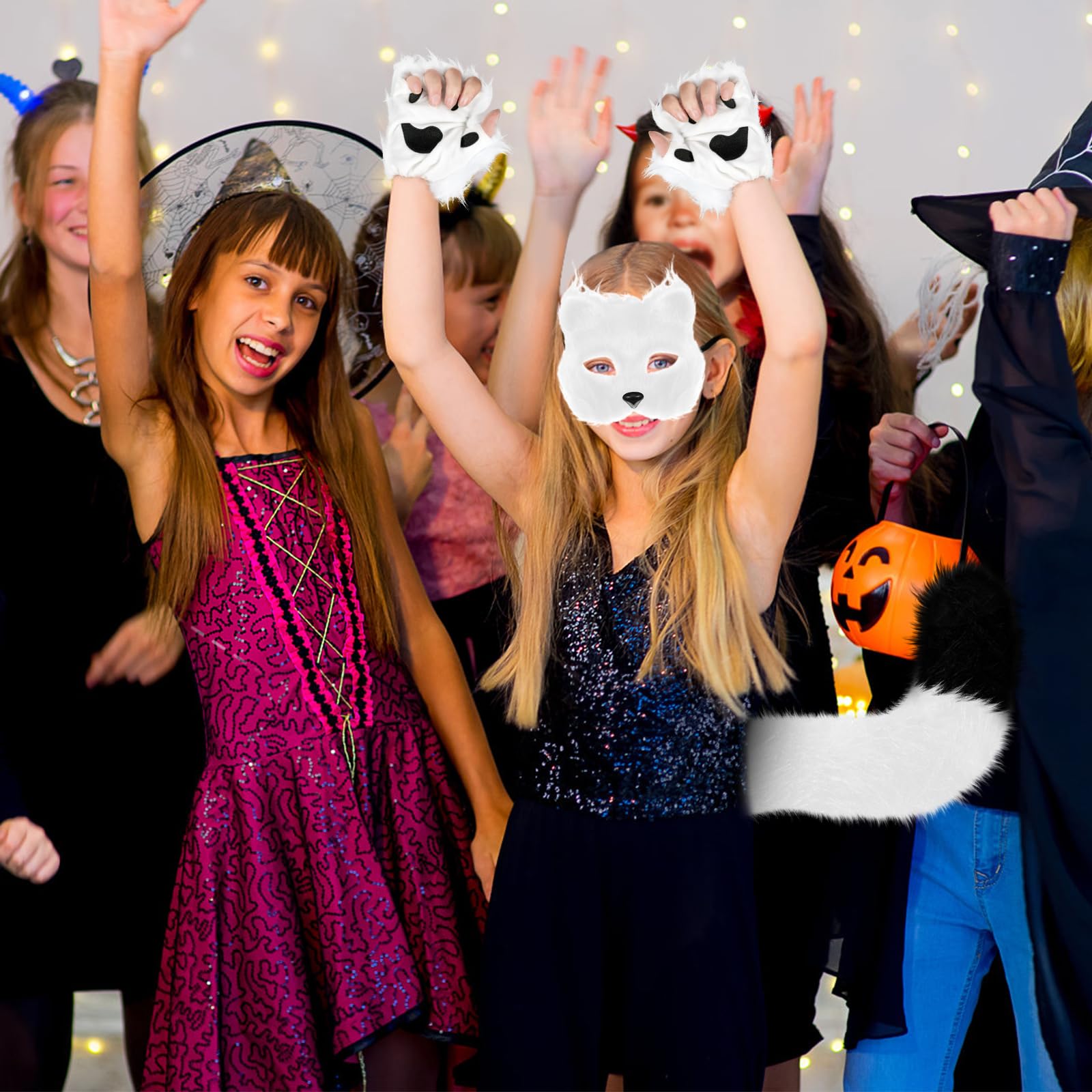 XEPST Furry Fox Wolf Cosplay Set with Mask Tail Paw Gloves, Animal Cosplay Costume Kit for Anime Fancy Dress Accessories Halloween Christmas Dress Up Carnival Role Play Party Supplies, White