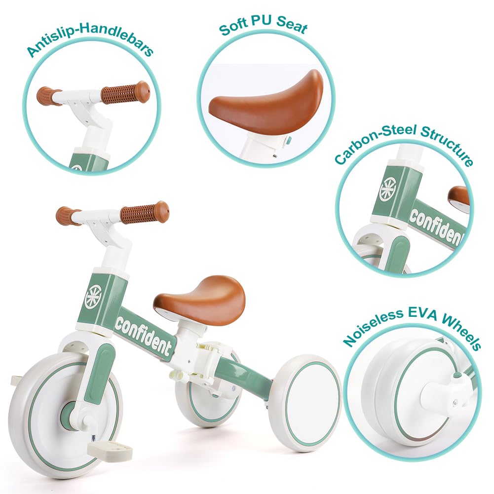 - 【Growth Partners】: Only a tricycle that will stay with your child for a long time. Tricycle without pedals (Learn to walk). Baby walker without pedal (The baby can walk). Tricycle with pedals (learn to ride). Balance bike with pedals (Learn to ride stage 2). Balance bike without pedals (Suitable for sliding)