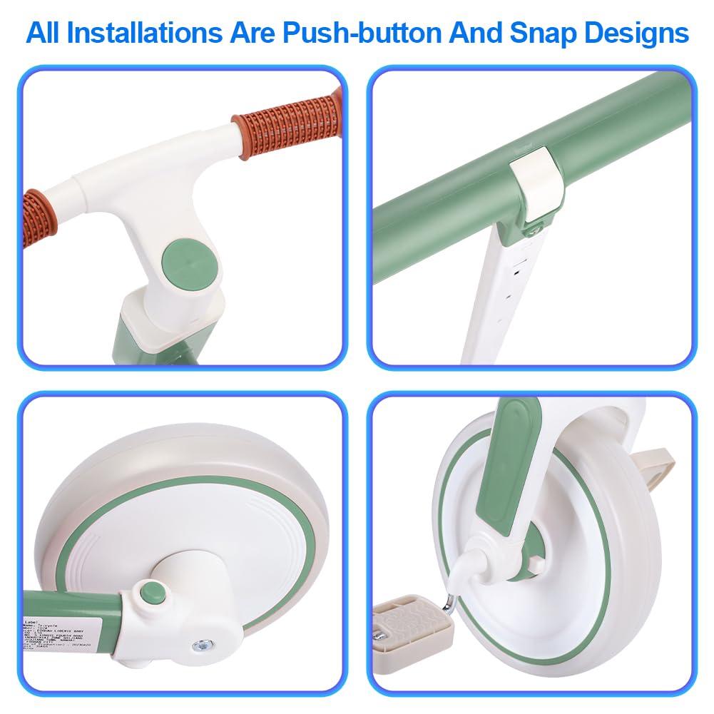 - 【Easy To Install】: It only takes 1 minute to install the bike, all of tricycle mounts are push-button and snap-on design, very easy to install. The footrests can be stored under the frame and the push bar can be adjusted according to the height of parents (you don't have to bend over, even if you're 70 inches tall), kids will grow up happily with it