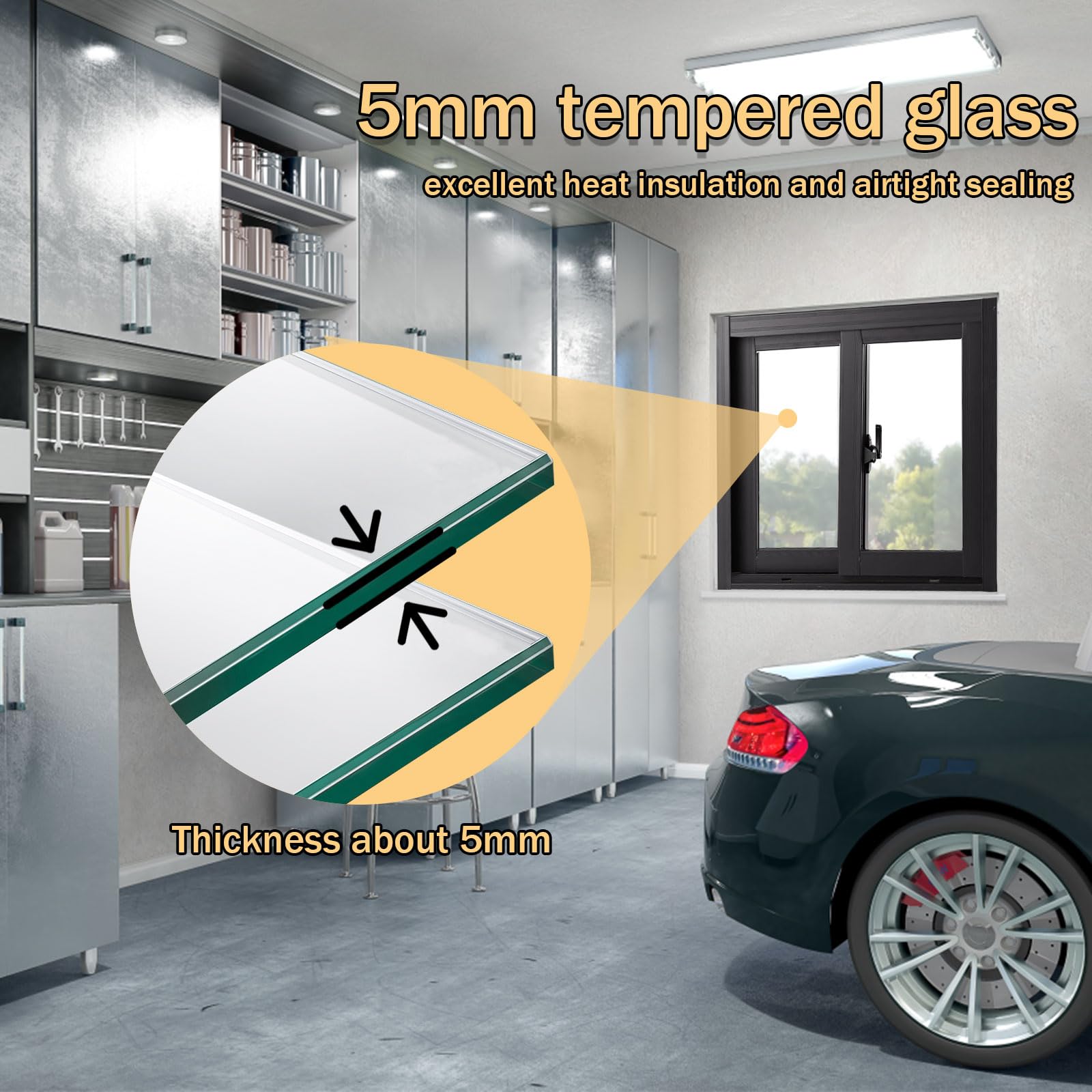 - Built to Protect and Insulate——Featuring 5mm thick tempered glass, this aluminum window provides excellent heat insulation and airtight sealing, keeping your space cozy and dry. Perfect as a garage window, it safeguards against the elements while maintaining sleek, modern style for lasting comfort and peace of mind.