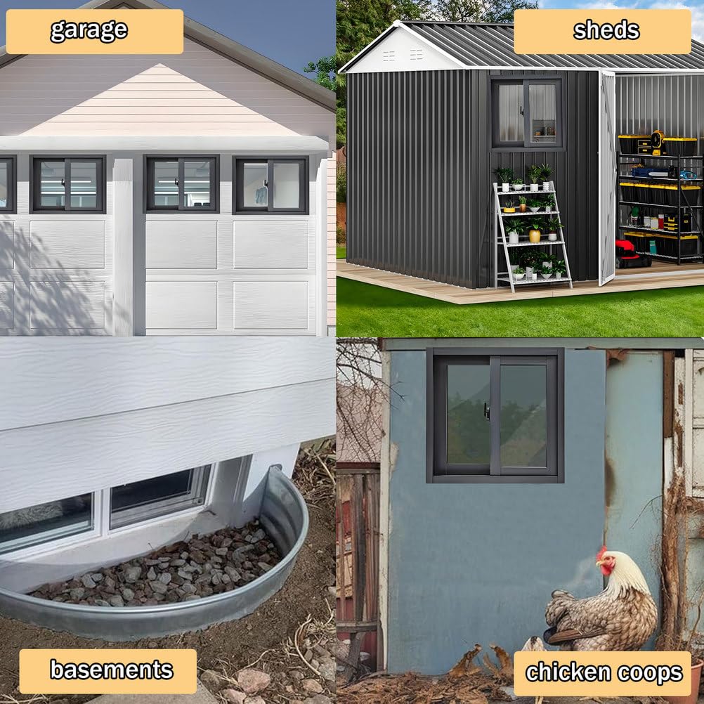 - Wide Applications——This window is suitable for sheds, garages, chicken coops, basements, bathrooms, barns, and more. This window provides a balance of natural light, ventilation, and protection in a variety of environments.