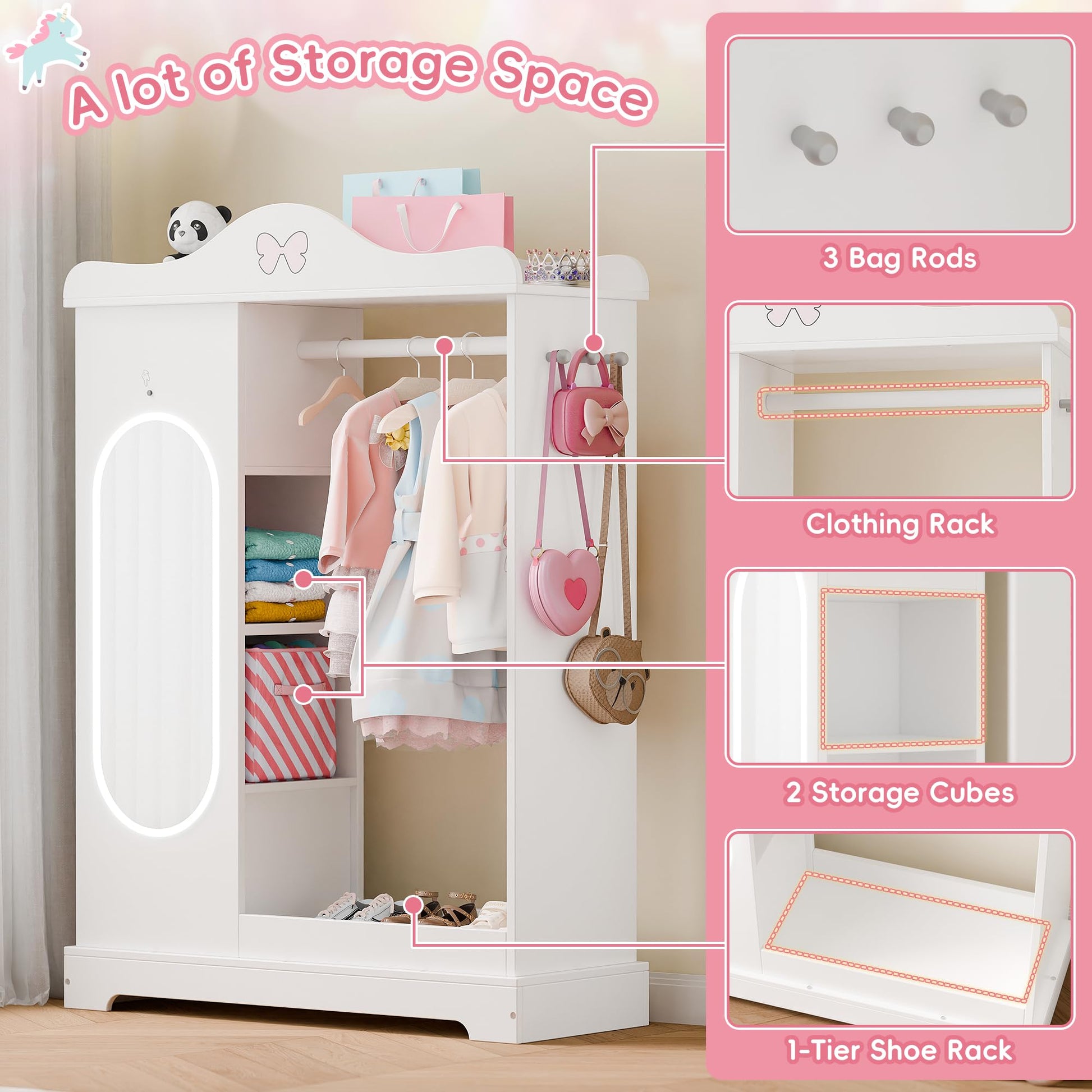 Xilingol Kids Armoire with a Jewelry Cabinet, Princess Dress Up Closet with Mirror, Kids Wardrobe Closet with Storage Shelves, Armoire Costume Organizer for Bedroom, Kids Room, Girl (White)