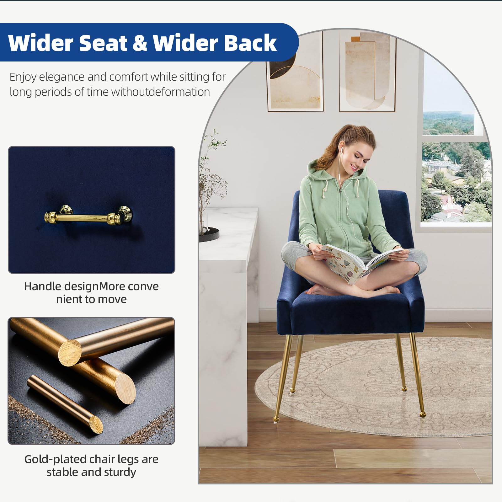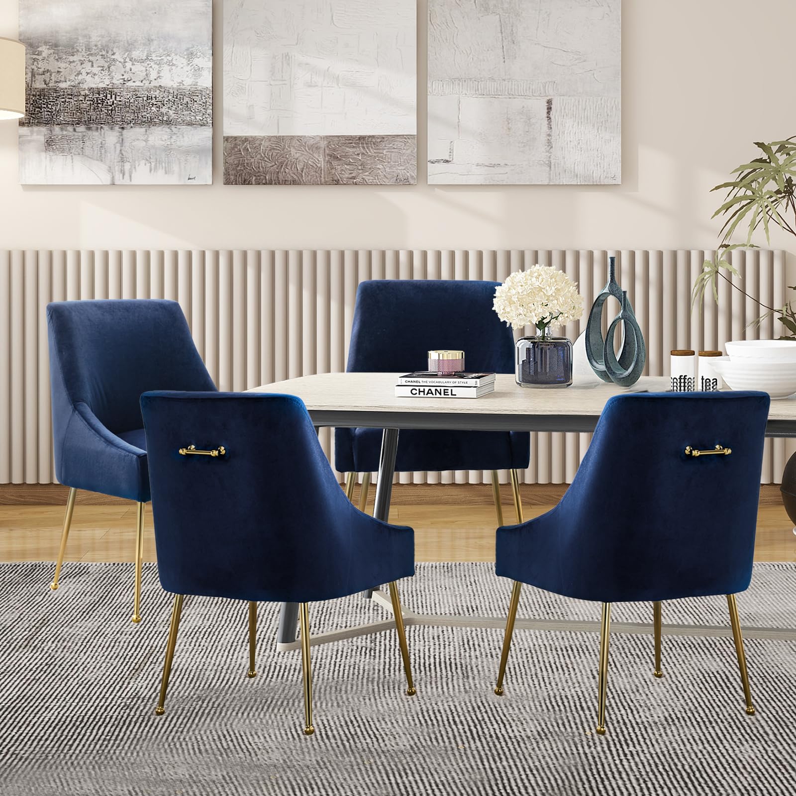 XINHE Dining Chairs Set of 2, Modern Velvet Fabric Upholstered Kitchen Chair with Metal Handle, Thick Cushion (Blue)