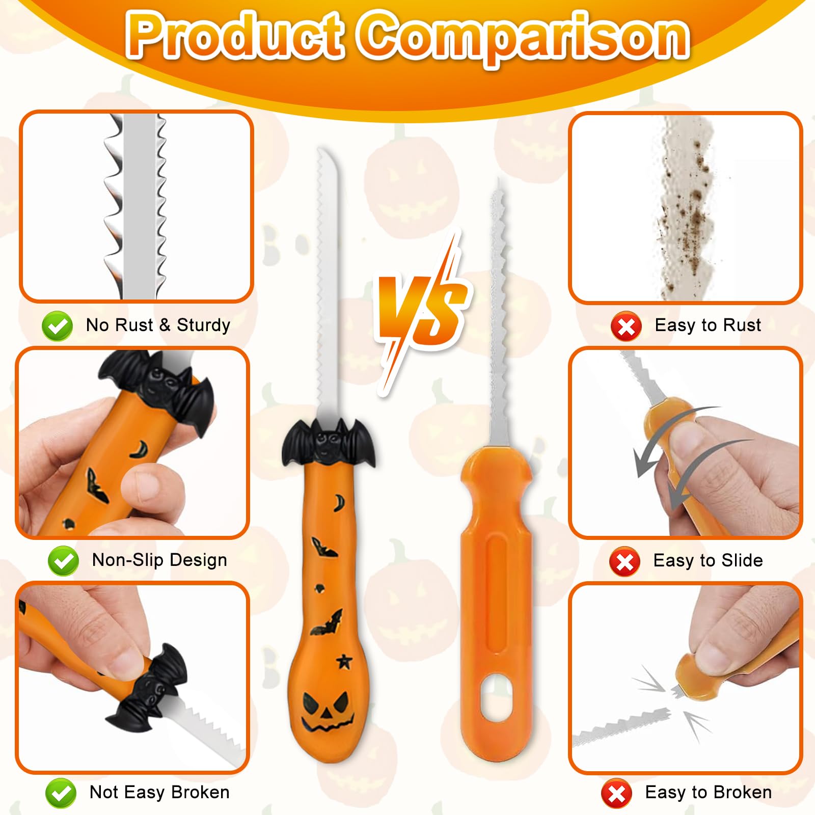 - 【 Heavy-duty pumpkin carving tools 】 These pumpkin carving tools are made of thickened stainless steel. Sculpting tools are professionally designed to provide the best control and precision to ensure perfect results, ergonomically designed comfortable non-slip rubber grips that won't feel tired even if you carve for a long time, allowing you to immerse yourself in hours of uninterrupted sculpting fun.