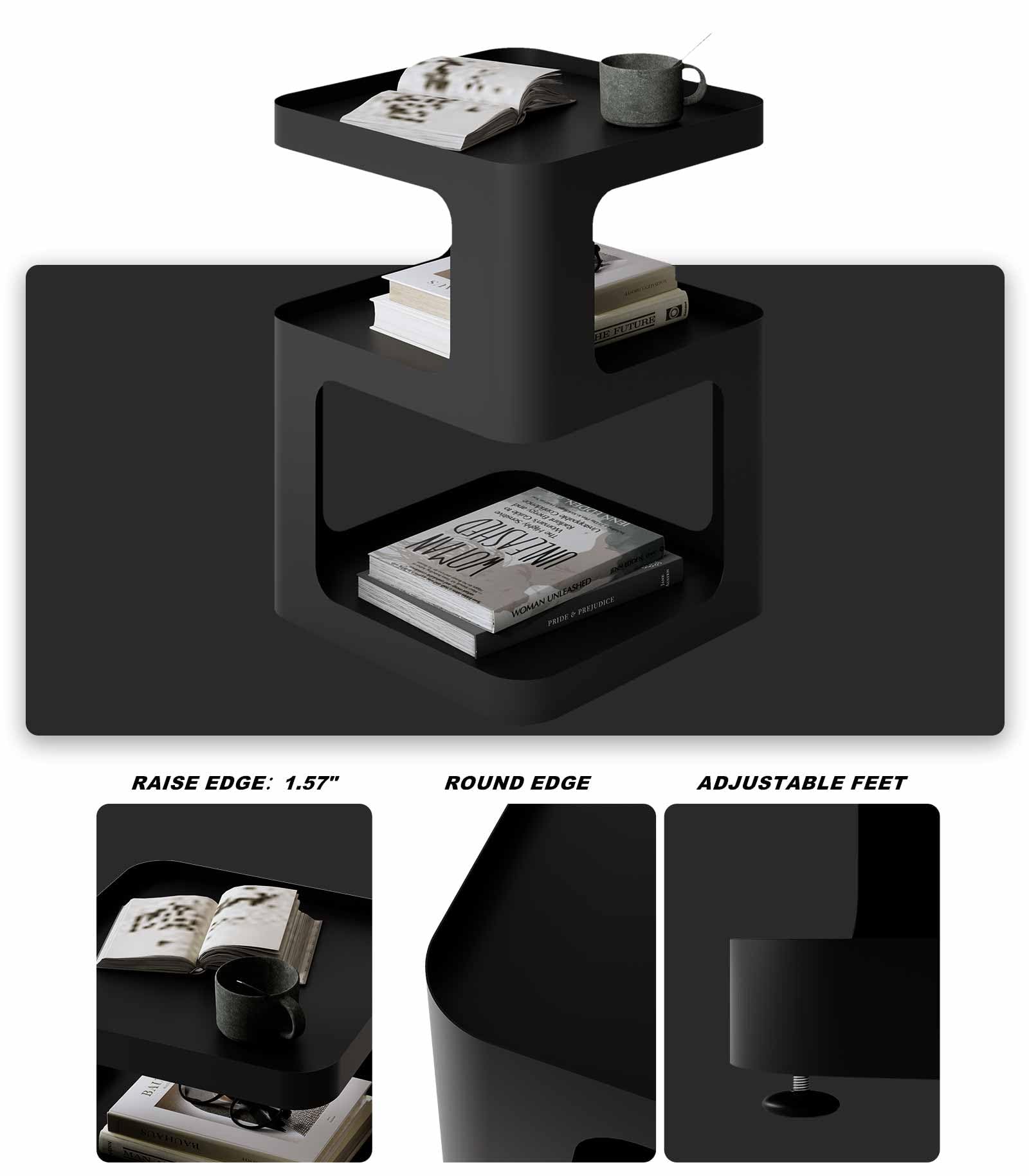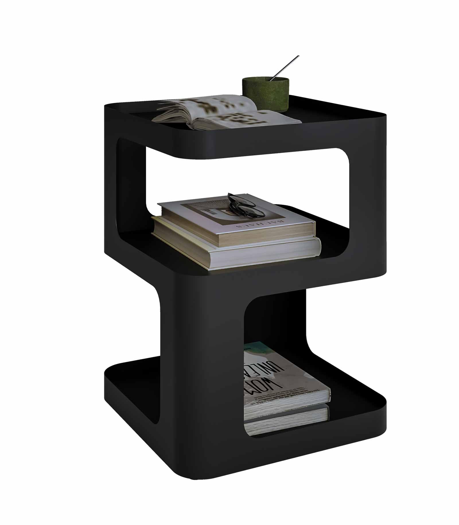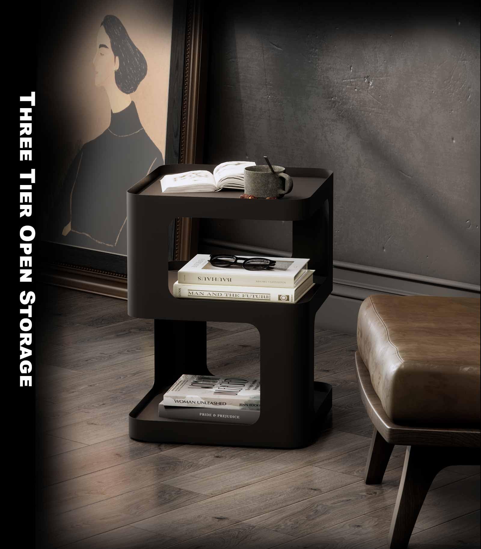 XIV Side Table, Small End Table, Modern Nightstand, Accent Bedside Table, 3 Tier Night Stands, Metal Bed Side Table for Living Room Bedroom Outdoor Entryway, No Assembly Required (Black, Square)
