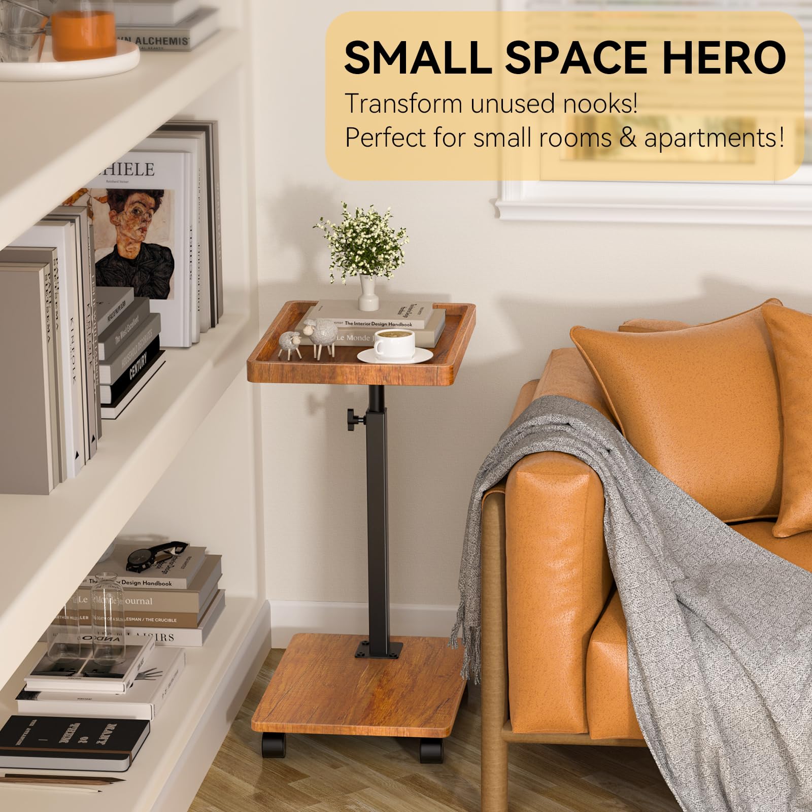 - 🏡【Adjustable height &Rolling】This side table with wheels can be adjusted height to suit bathtub, couch, bed, and chairs, while the swivel table can be rotated 360°. The C shaped end table is designed so that it slides nicely under the sofa. This side table comes with wheels on the bottom, you can easily move it to where you want to go.