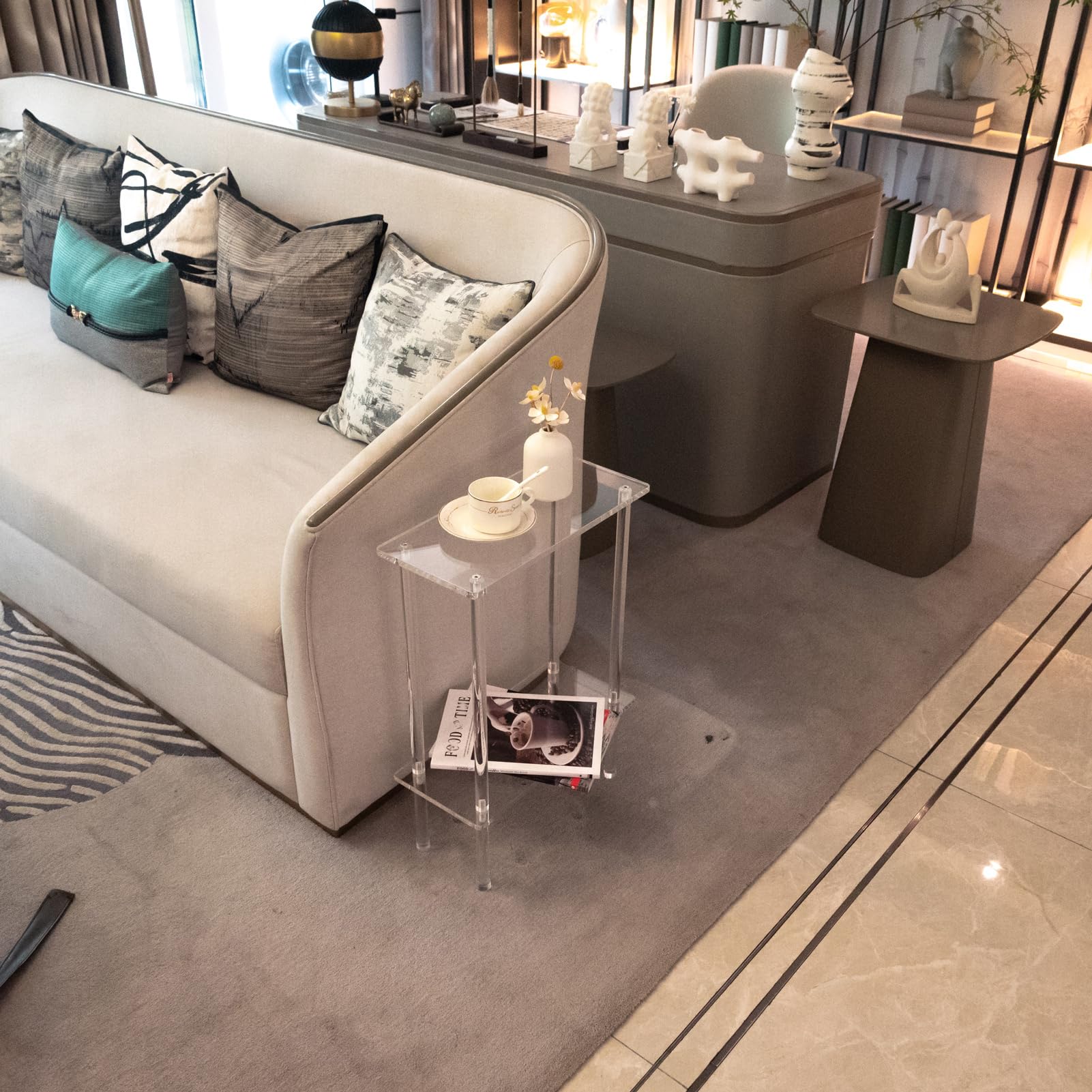 - 【Storage space】Acrylic side-table is the perfect choice for small space and corners, and its size is 15.7'' L x 7'' W x 22.3'' H . The acrylic side table can fit closely with storage space in corners or narrow area, in order to optimize space utilization.